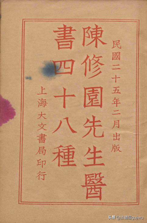 中医古籍《陈修园医书四十八种》陈修园撰 📖页数: 2872页12册48种 🆕简介:《陈修园医书四十八种》(清)陈修园撰 民国二十五年(1936)铅印本 12册,中医相关古籍。