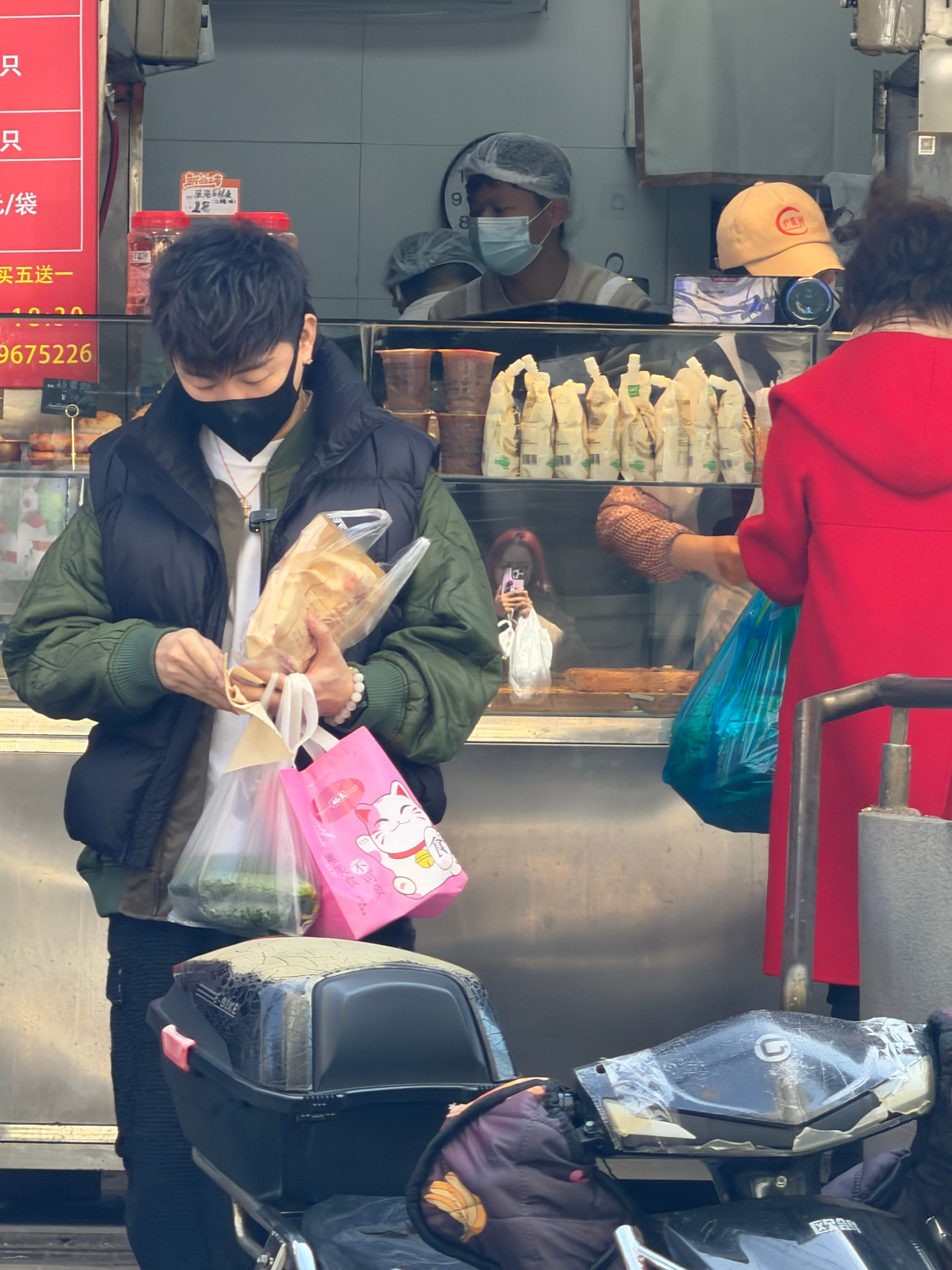 公园偶遇胡彦斌菜市场也能偶遇胡彦斌啊!生煎包好吃嘛?也太接地气了吧哈哈哈!还有人