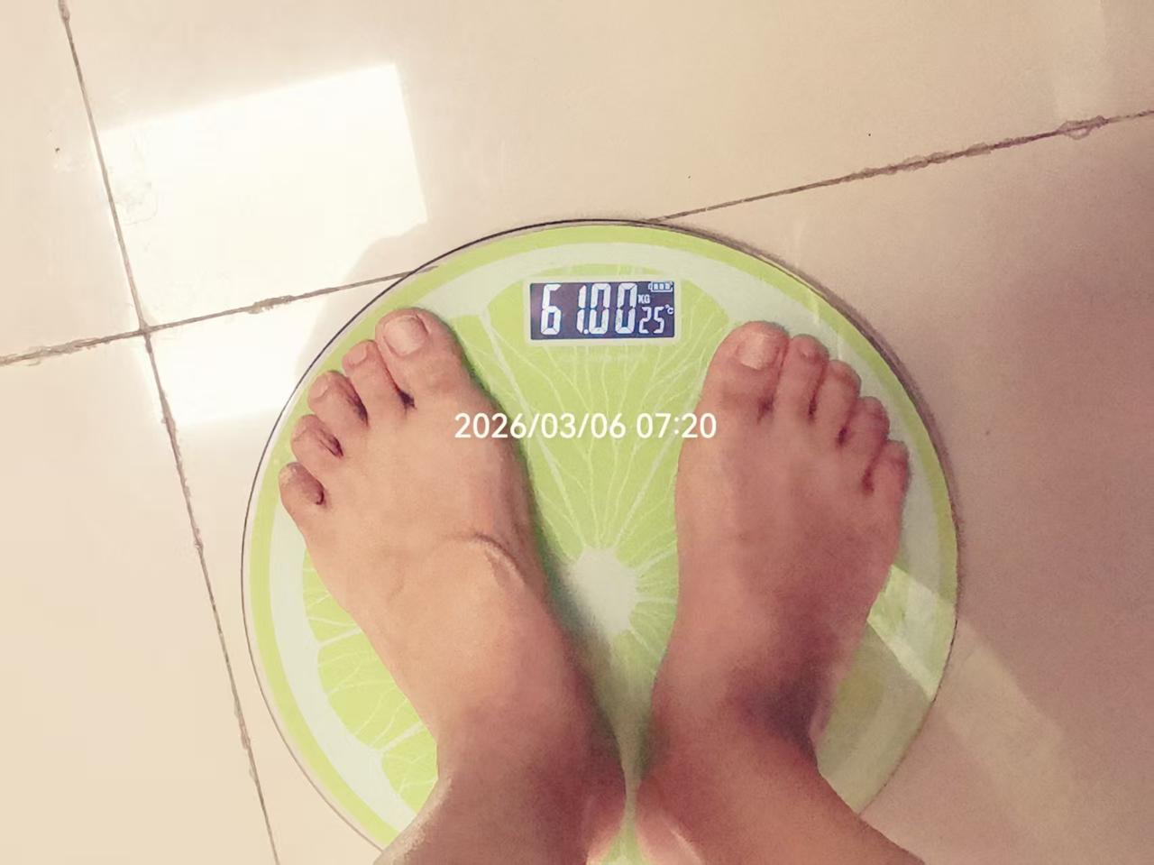 所有的减肥,任你花样百出,到最后都会归结到一个“饿”字;想不挨饿,是减不了肥,瘦不了身的。 减肥路上的绊脚石是我家老先生,我想减肥的时候,他非要说不用减,你这是基因性肥胖,也就是说,他说我这是遗传,因为我妹妹应该算是一个胖人,老妈妈应该不算胖,但是肚子大。 刚结婚的时候,老妈妈还非常担心,那时后我1.6的身高,体重不到100斤,妈妈说太瘦了,这怎么能怀孕生小孩呢;好在我是易孕体质;但是怀孕后,我妊高症非常厉害,到生产前,浑身浮肿,体重飙升到160斤。 后来提前剖腹产生了小孩,体重基本就是140斤,再后来就算是稍微减些,基本也就是在130-140之间,这些年没有很胖,但也没瘦下来。 我以前年轻的时候,在减肥这件事上是口号的巨人,行动的矮子;总是口号喊得振聋发聩,但是实际没啥行动,既没有管住嘴,更没有迈开腿。 53岁了,体重基本一直在130-140;2026年,都在重建自己;减肥的心又萌动了,因为我现在腰也不是很好,急需自己锻炼,还有重度脂肪肝,腿关节炎,这些都需要我减轻些体重。 看视频里,有很多专家说,不用减肥,女人50多岁了,体重略胖比较好,说是万一有什么疾病来了能抗得住。 但是,经过我这一个多月的节食+走路,虽然才轻了5斤,还看不出我有多瘦来,但自己知道;之前的一个T恤,本来都穿着很紧了,现在穿着就比较宽松;裤腰也觉着宽松了,还有,感觉自己现在身体变得轻盈了,当然也许是心理作用。 但不管怎样,通过节食,我感觉自己的身体更舒服了,而且心情更舒畅了!以前晚上总是喜欢胡吃海喝的,不吃到撑就不算饱,现在我是早晨正常吃,午餐也吃8分饱;到了晚上基本上不吃饭,也许会吃些水果。晚上7点左右,走路一个小时。 我知道自己现在的体质比较弱,还处在更年期,减肥一定要循序渐进,健康的减掉肥肉。如果能在三个月内,瘦个7、8斤,一年瘦上10斤,如果能到115,那我可太开心了,是一个很大的收获了[大笑]。 对我来说,最关键就是晚上不吃饭。2月6日,63.85公斤,3月6日,61.00公斤,希望到4月6日的时候,能再减掉1公斤[点亮平安灯] 所有的减肥,不管你怎么运动,都要辅助节食,不挨饿是瘦不下来的。而且,还会有反复,因为过年,我晚上偶尔还是会出去参加聚会,不能完全的减掉晚饭! 但是,不管则么迂回曲折,只要是在往下降,就有收获[玫瑰] 姐妹们,你们说50多岁了,还需要管理身材吗? 记录我的2026 70后