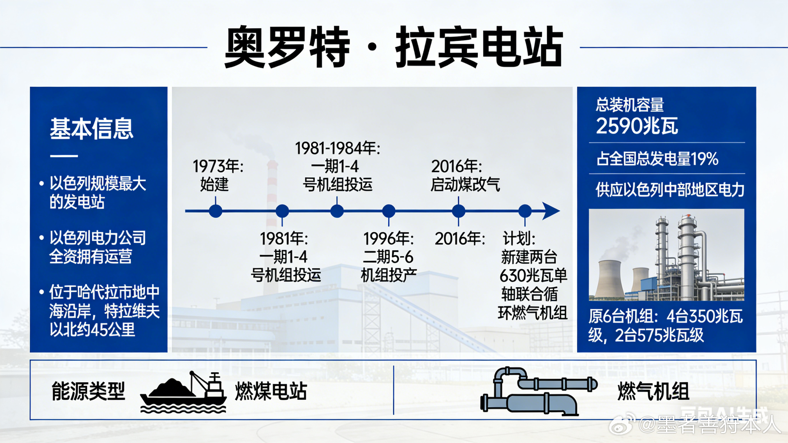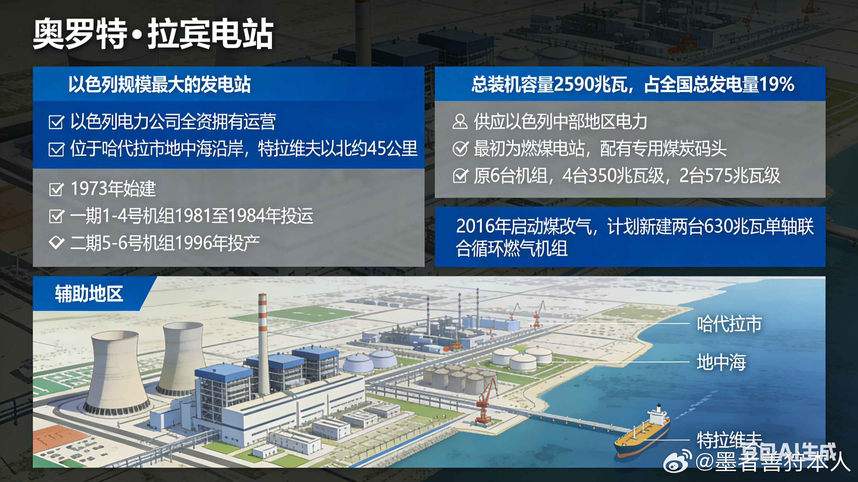 奥罗特・拉宾电站(Orot Rabin)是以色列规模最大的发电站,由以色列电力公司(IEC)全资拥有并运营,坐落于以色列地中海沿岸的哈代拉市,地处特拉维夫以北约 45 公里处,是以色列中央电网的核心供电枢纽。