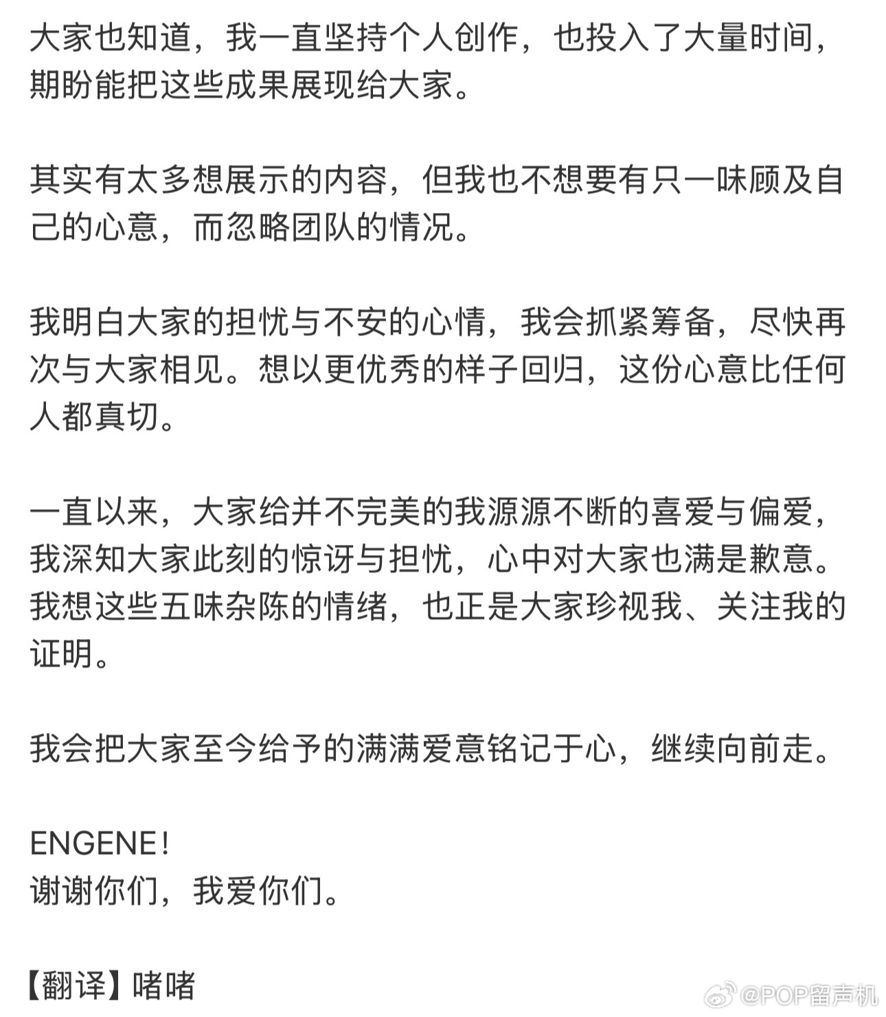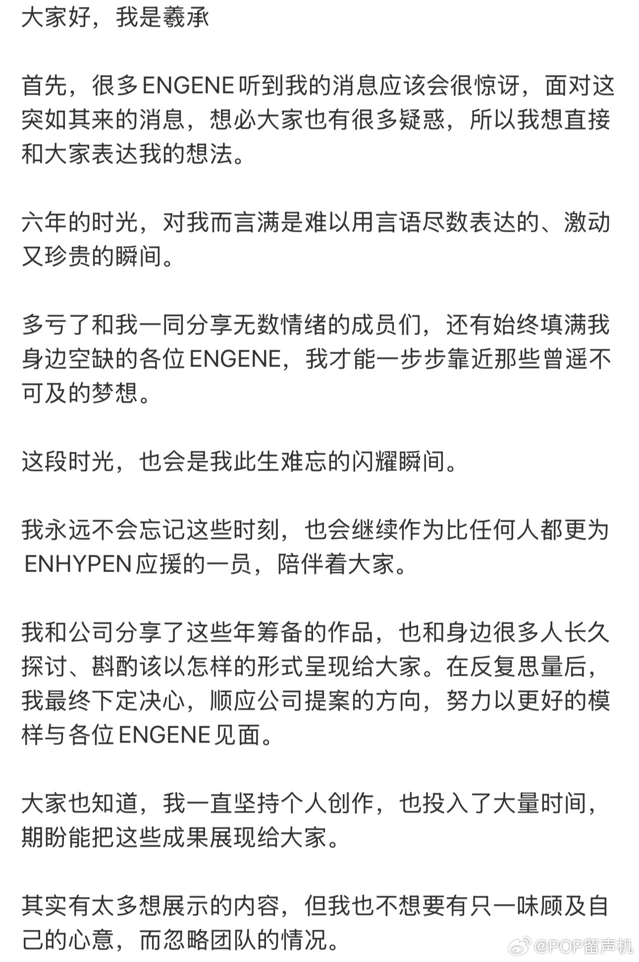 李羲承退队李羲承针对退团发布手写信