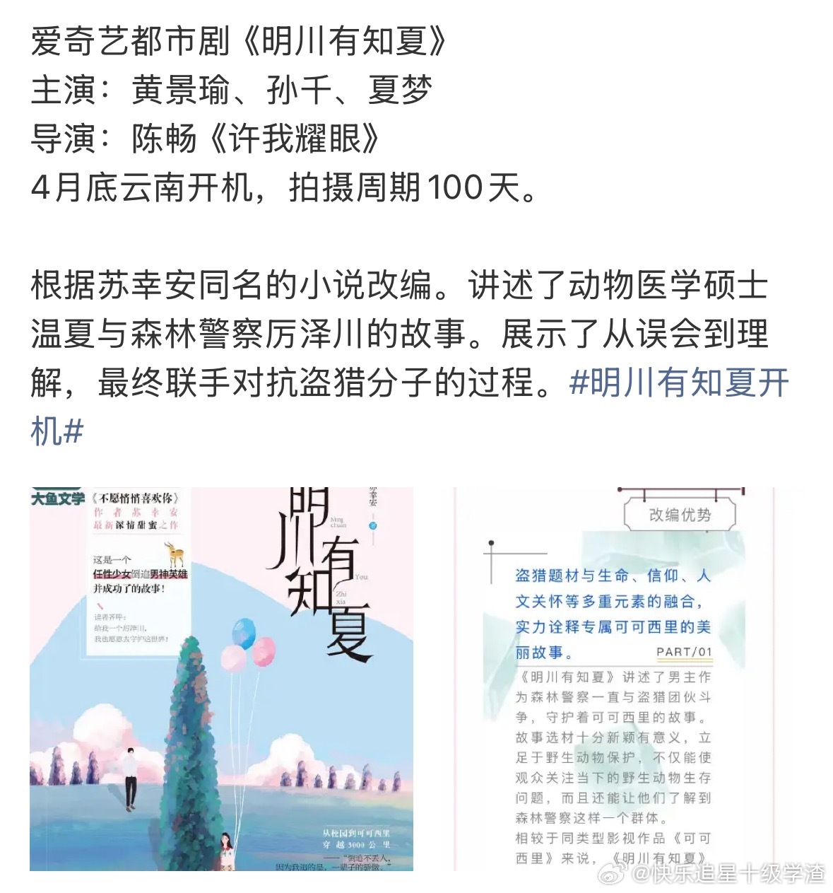 🥝电视剧《明川有知夏》:黄景瑜、孙千、夏梦之前网传女主是金晨