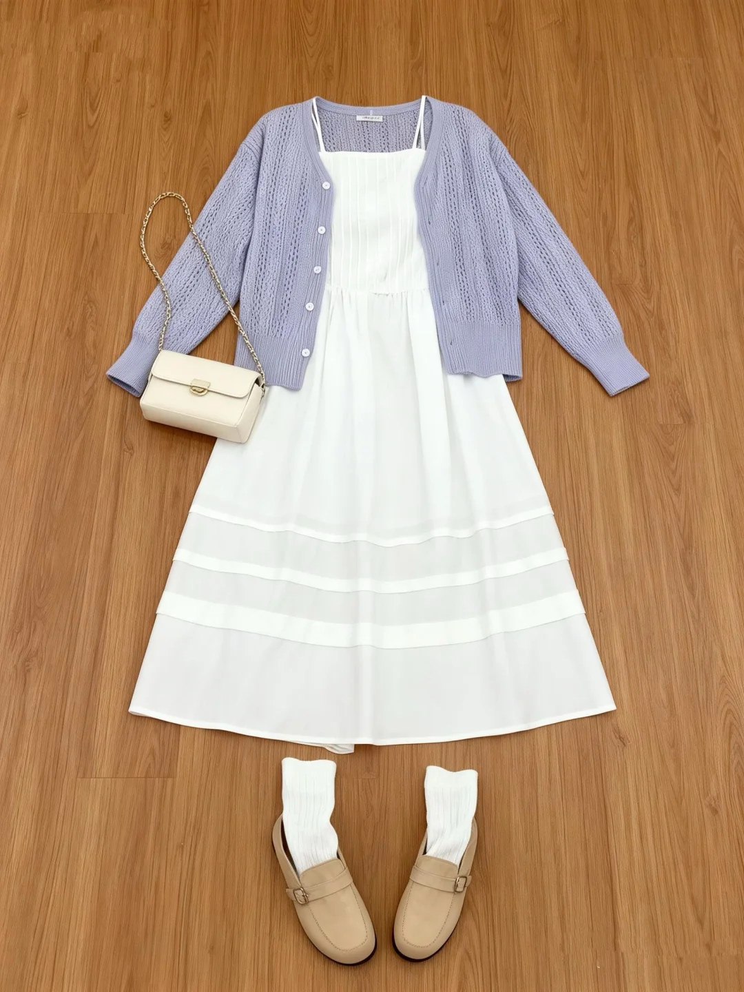 初春穿搭分享 温柔穿搭风 春季穿搭 日常通勤穿搭也要美半身裙 短款上衣 生活美学白色半身裙 白色连衣裙
