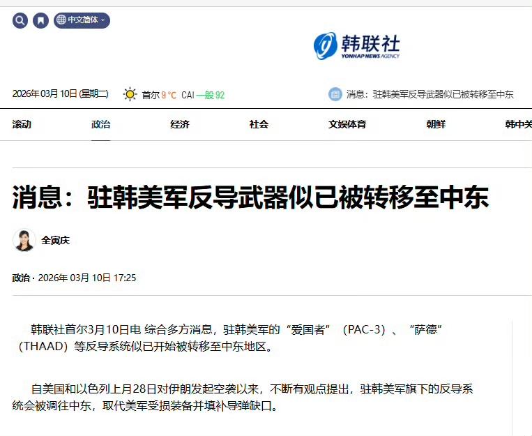 韩国总统李在明:我反对了。没用。 韩媒实锤:萨德和爱国者被老美搬去中东了! 想当年韩流娱乐在国内多火爆,年轻人谁不能哼两句。 一个萨德系统下来,韩流没有了,韩国电子、汽车等商品几乎全面撤退出中国市场了。 韩国费尽心思得到了啥,萨德? 你的萨德现在去中东救以色列了。 [大笑]