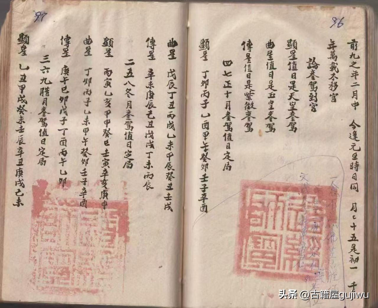 择日通书古籍《选择通书全集》 📖页数: 86双页170页 🆕简介:《选择通书全集》择日择吉通书相关古籍。主要用于婚嫁、安葬、修造、动土等事项的吉日选择。书中内容涵盖多种择日方法,如罗天大退日、三丧煞、灭门凶时、杨公忌日、黄沙日等凶日避忌,以及天赦日、天喜日、月德合等吉日应用。书中还包含五虎遁、五鼠遁等干支推算口诀,用于确定年月日的天干地支。此外,涉及周堂、重丧、十隔、白虎煞、红沙煞等神煞的查法与化解,以及嫁娶利月、男女命犯煞避凶等民间习俗内容。