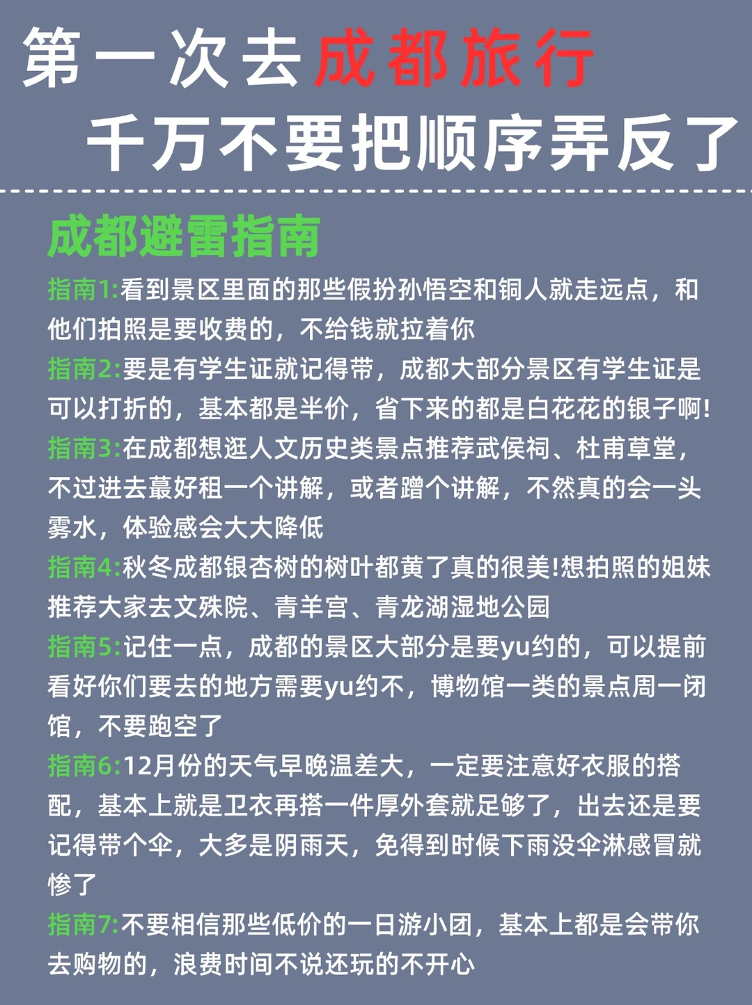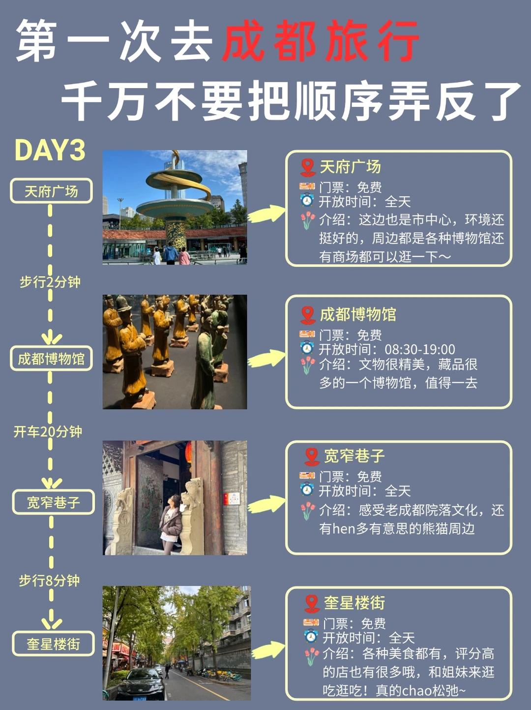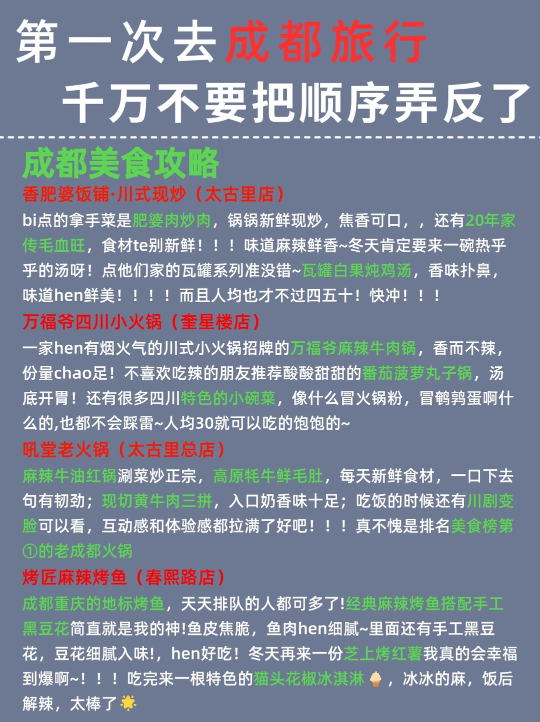 很多宝宝们都是第1⃣次去成都✔别怕❗连夜整理了一下三天的行程,这样玩还蛮舒服的,而且元旦线下活动蛮多的,祝大家玩得开心呦🥳
