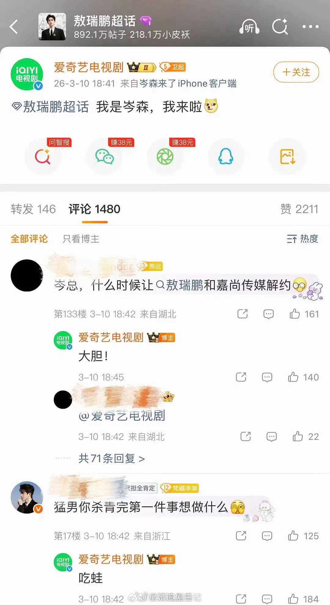 敖瑞鹏回应解约 粉丝让敖瑞鹏合约到期和嘉尚传媒解约,他回复了这条评论,是不是有迹
