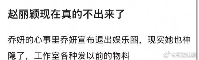不会吧,小丽只不过最近作品播出不理想热度自然就下去了,不可能就这样退圈的