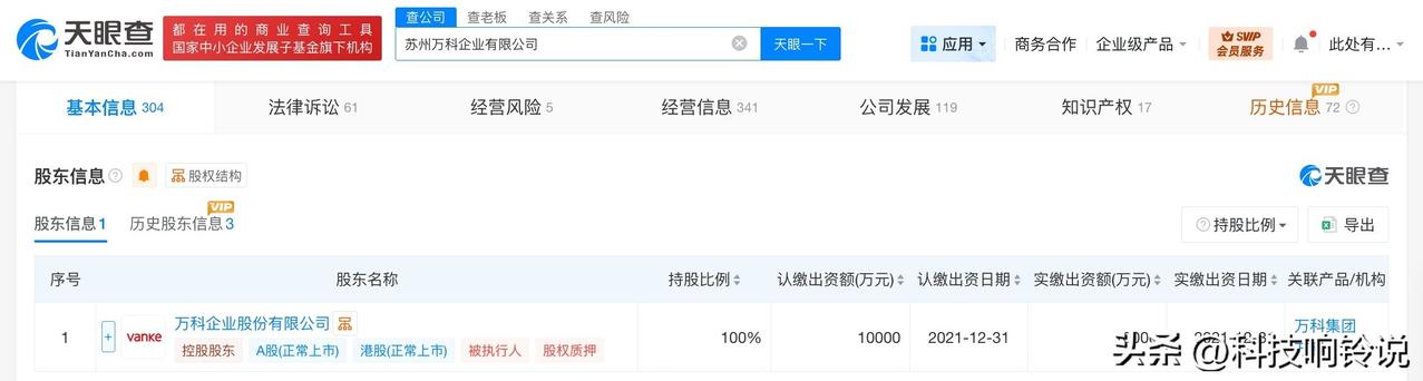 【万科被冻结3571万股权 万科所持3571万股权被冻结】 天眼查天眼风险信息显示,近日,万科企业股份有限公司新增一则股权冻结信息,股权所在企业为苏州万科企业有限公司,冻结股权数额3571万余元,冻结期限自2026年3月10日至2029年3月9日,执行法院为沈阳市沈河区人民法院。 苏州万科企业有限公司成立于2006年7月,法定代表人为谭伟,注册资本1亿人民币,经营范围包括房地产开发经营、市场营销策划、住房租赁等。股东信息显示,该公司由万科企业股份有限公司全资持股。 天眼查信息: