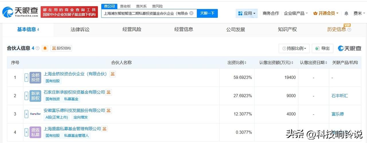 【富乐德等在上海成立智能智造二期私募基金 出资额3.25亿】 天眼查工商信息显示,近日,上海浦东智能智造二期私募投资基金合伙企业(有限合伙)成立,执行事务合伙人为上海盛盎私募基金管理有限公司,出资额3.25亿人民币,经营范围为以私募基金从事股权投资、投资管理、资产管理等活动。合伙人信息显示,该基金由上海金桥投资合伙企业(有限合伙)、石家庄新承股权投资基金有限公司、富乐德(301297)、上海盛盎私募基金管理有限公司共同出资。 天眼查信息: