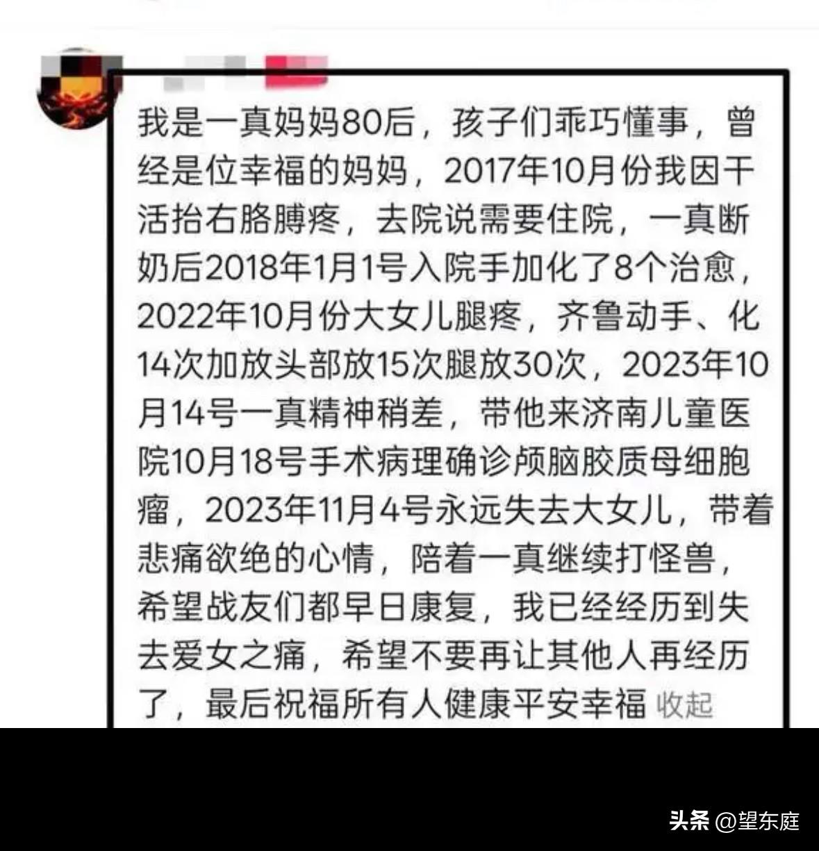 泪目!这位来自山东的一真妈妈真的太苦了,她生下的两个宝贝孩子都相继因病离开了她。原本幸福的家庭,随着孩子们的离开,再也回不去了。 一真妈妈是80后,她是生活在山东的一个普通农村妇女。她和丈夫组建家庭后,先后生下了一女一儿。一家人日子虽然不算富裕,但胜在知足常乐。 可所有的一切都在儿女查出重病后被彻底改变! 一真是个男孩,在他还很小的时候,就查出了患有脑胶质瘤。2018年那会,他还是个刚断奶的小宝贝,就不得不开始常往医院跑。在医生积极治疗下,一真的情况渐渐好了许多。 可没想到,这个风雨飘摇的家庭还没来及好好缓口气,一真的姐姐又在2022年查出了疾病。 两个重病的孩子,对这个家庭而言意味着什么?相信大家都能体会。 2023年11月4日,一真姐姐永远的离开了。 更令人心碎的是,那时候一真的情况也不容乐观了。这让痛失爱女的一家人,不得不强忍悲痛带着一真到处寻医问药。 这些年的时间里,一真的家人真的承受了许多许多。好在,一路上都有很多爱心人士一直在陪伴着他们前行。 为了挽救一真的生命,他先后经历了多次开颅手术。可在2026年3月1日,他年幼的生命还是走到了尽头。彼时,距离他姐姐离世的日子,不过区区两年多时间。 几天前,一真妈妈发布了最新的视频,文案里,简简单单的一句话,让人看了瞬间就破防了。 儿来一程,母念一生! 可她真的太苦了,先后送走了自己的两个孩子啊! 在此,我们都很难真正体会到她们一家人是什么样的心情。只愿她们未来的每一天,都要健康平安。[祈祷][祈祷]