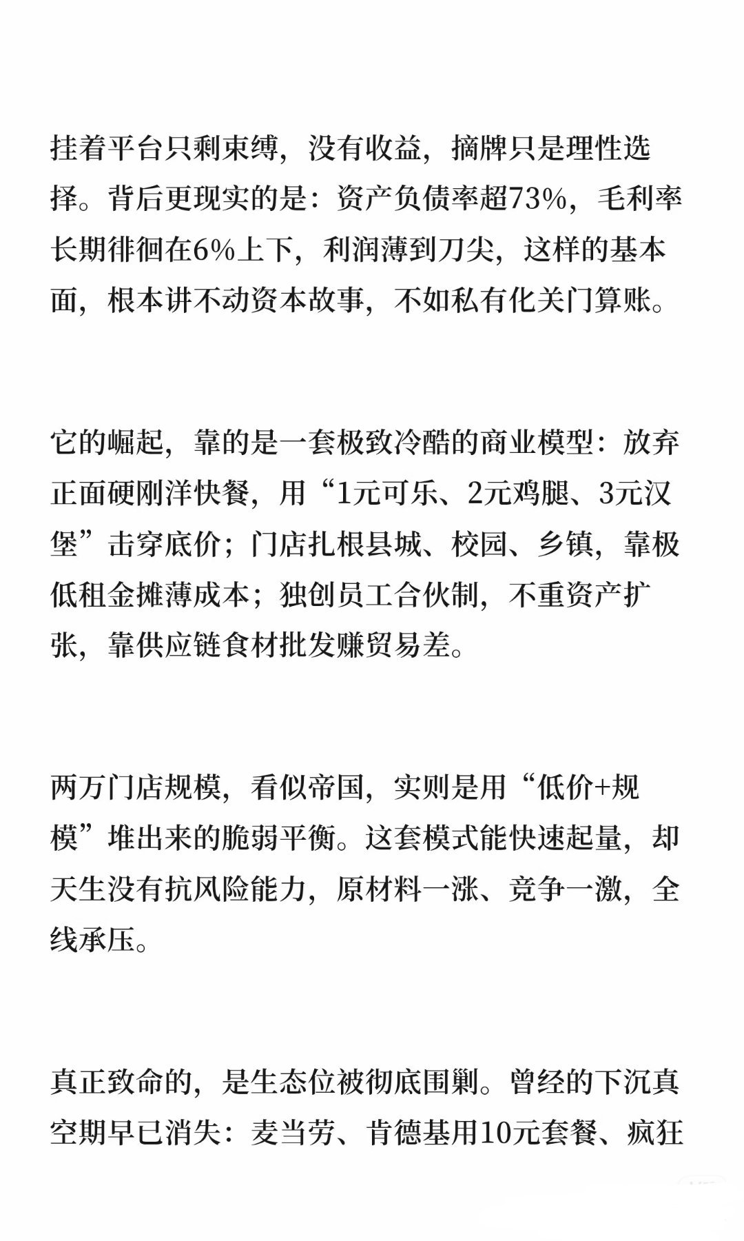 华莱士正式宣布退市看到有分析说华莱士负债21亿,负债率超73%,毛利率仅有6%~