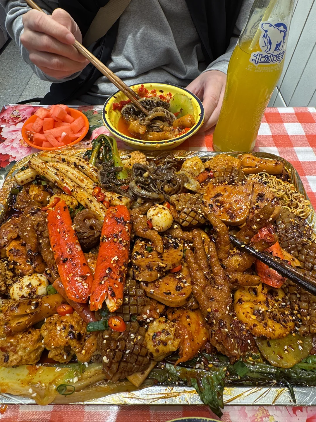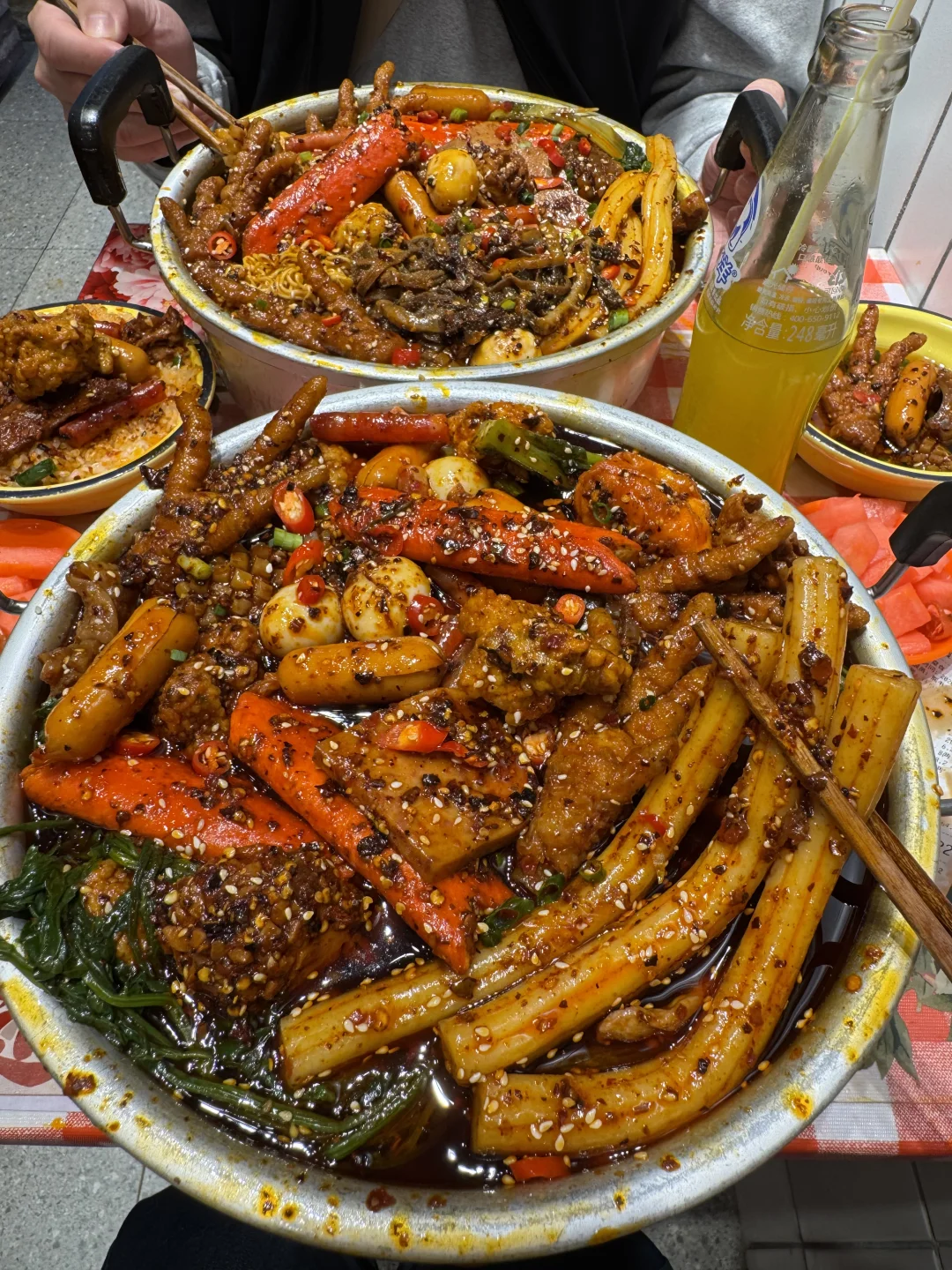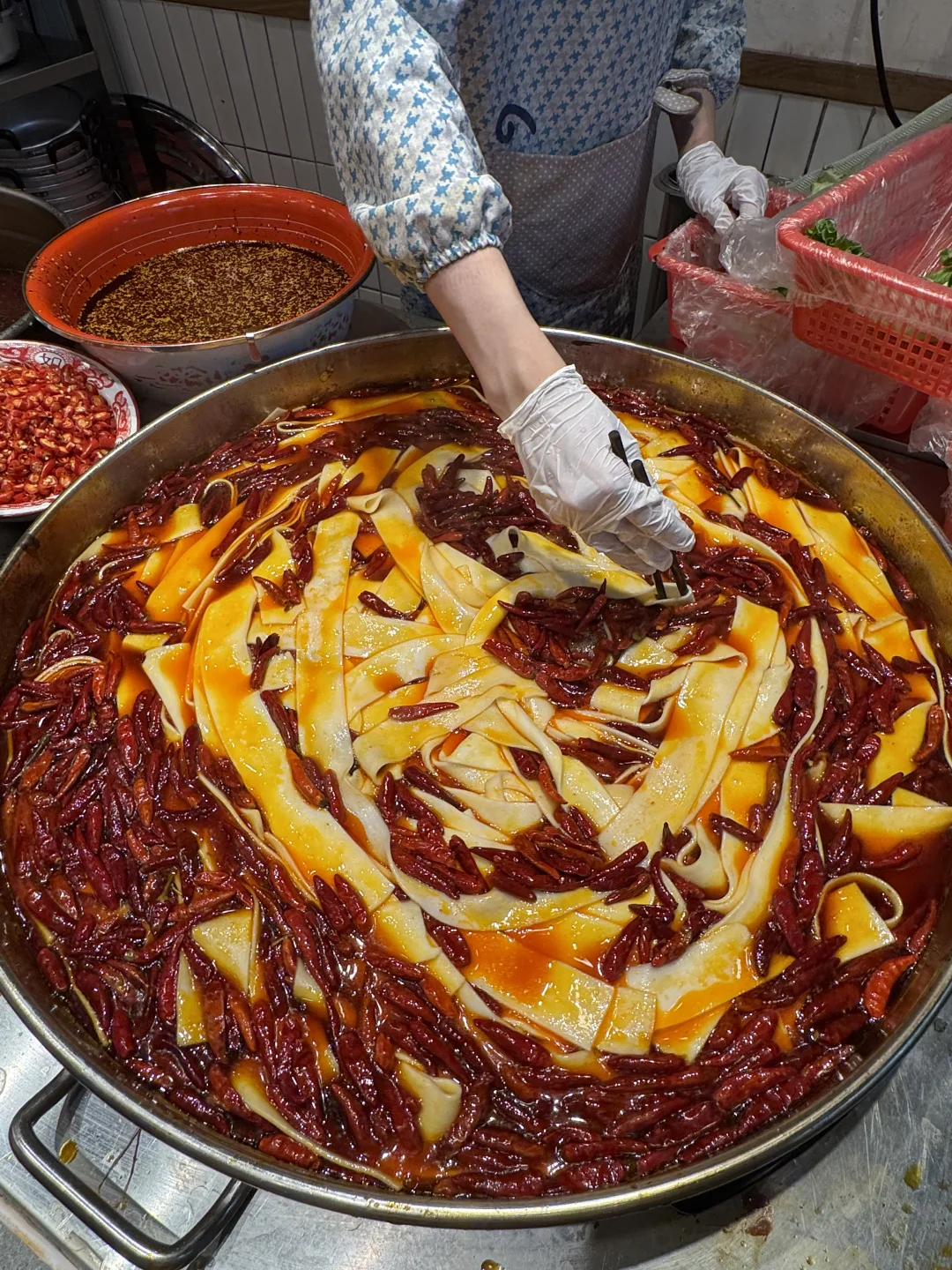真的是本打工人最爱的食堂了!!!就在石油路居民楼下,菜品肉眼可见的新鲜,种类多又便宜。 他家的味道是真的爱,很像我们小时候吃的那种重庆麻辣烫的味道!牛油醇厚! 1r的牛肉串真的很好吃,嫩嫩的!巨无霸虾滑面筋,也很爱,好Q弹的口感,口感丰富,很香。虾扯面、一米长的土豆片……都很好吃!!! ·