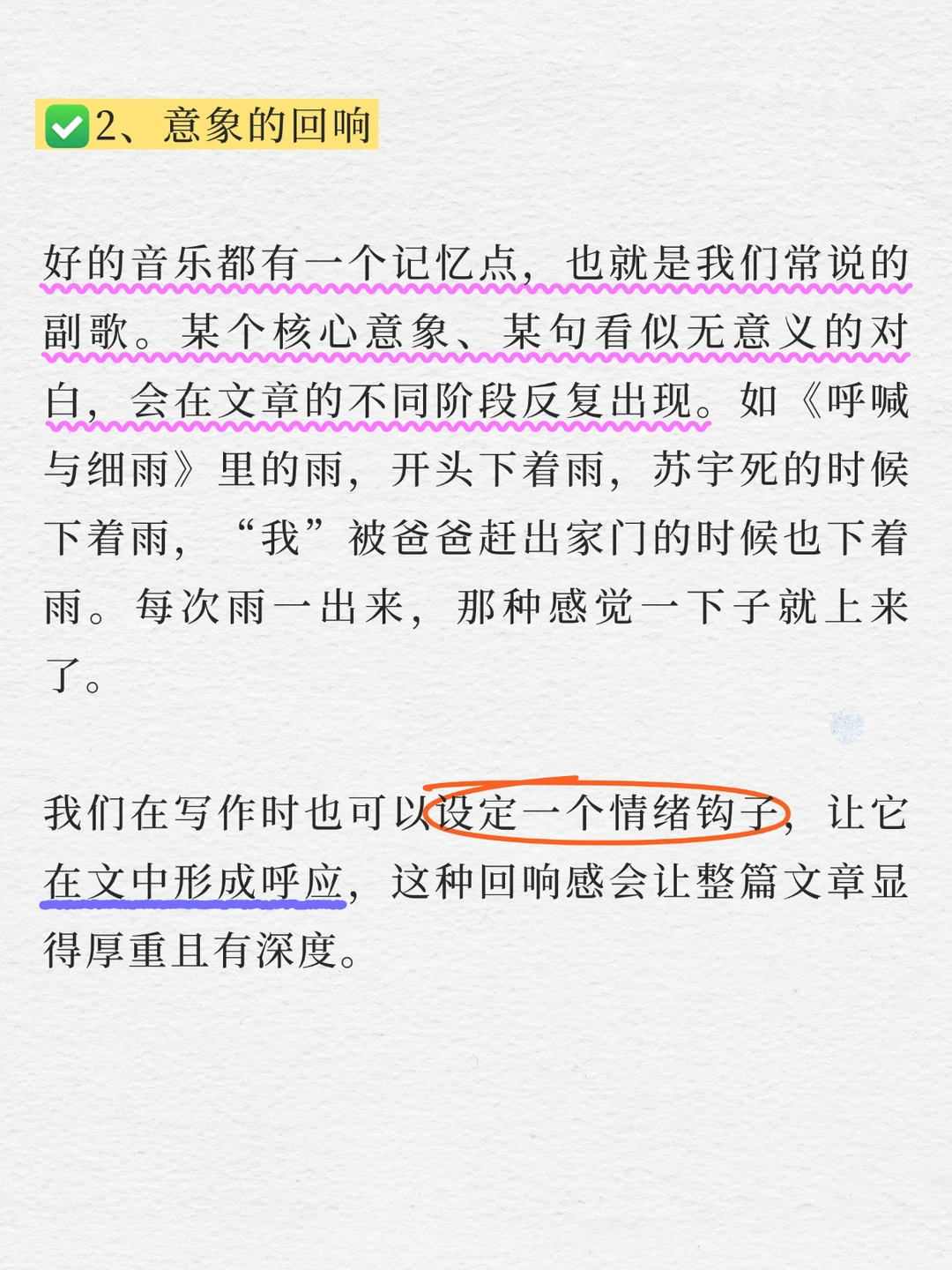 🌾我们在写作时也可以设定一个情绪钩子,让它在文中形成呼应,这种回响感会让整篇文章显得厚重且有深度。