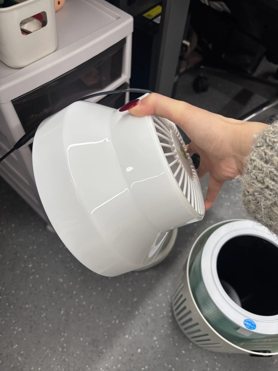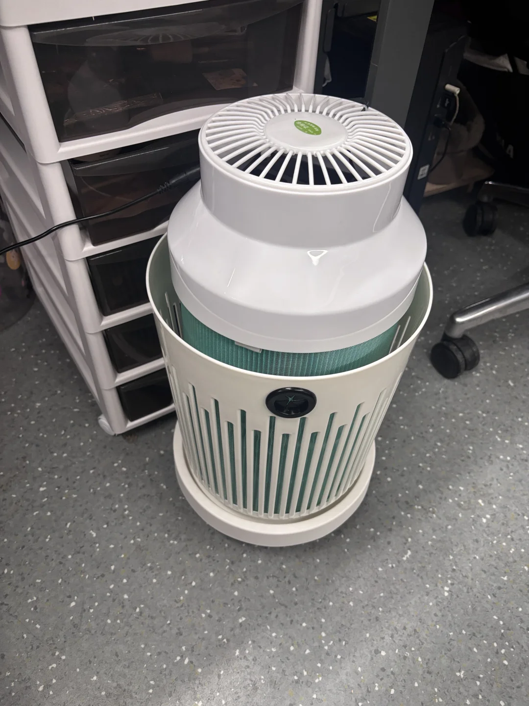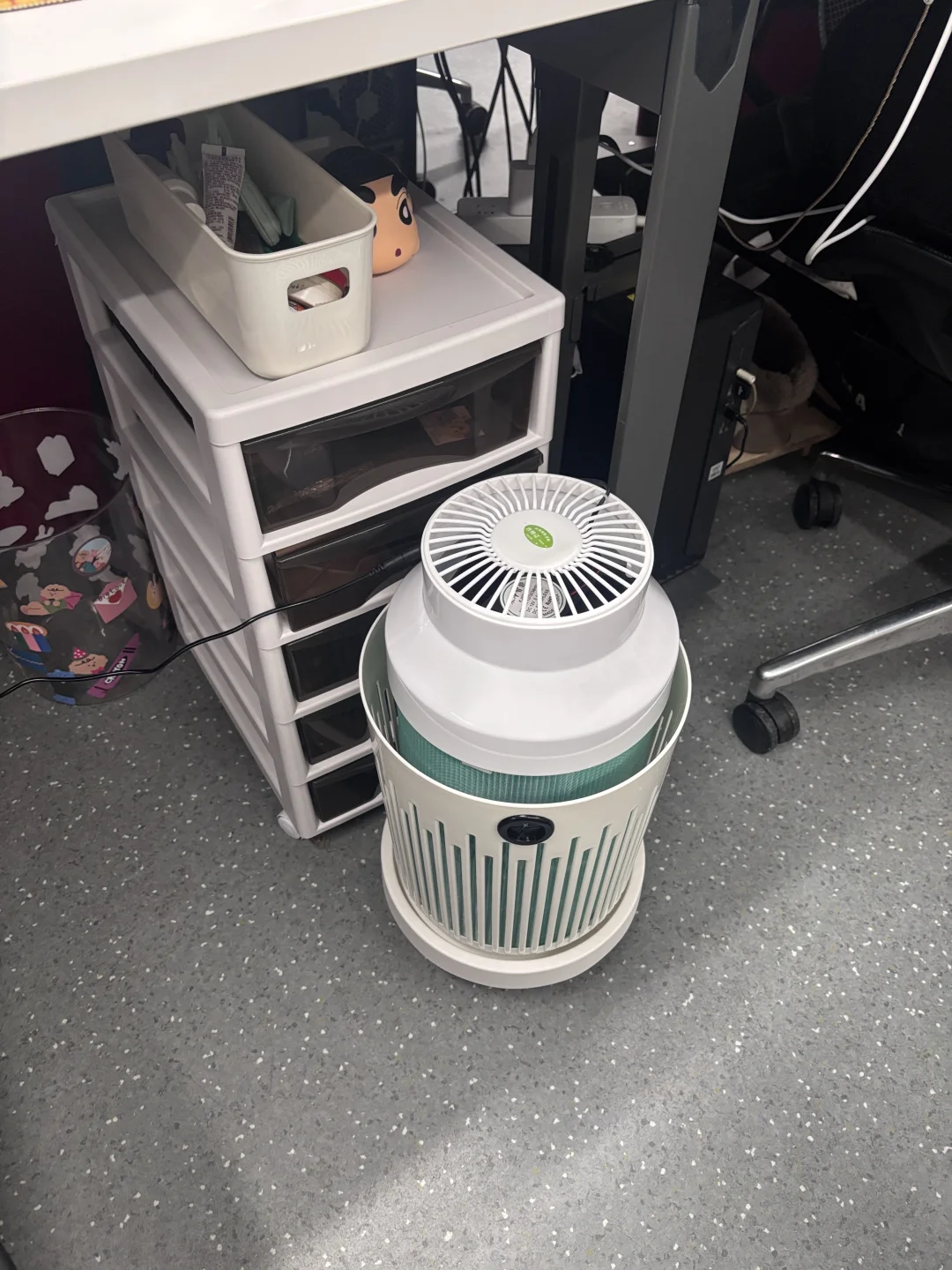 公司人多 空间又相对密闭 家里有个很大的空气净化器 但是我在家时间太少 今年工作打算全力以赴 同时也想好好照顾自己 找来找去 别的牌子我都不信 小的过滤没效果 大的没位置放 干脆组了个能过滤得七七八八净化器 就过滤+风循环 档位好调 声音也小和主机差不多 底座我买的垃圾桶 +滑轮 搭配的 这样下班收到桌下很方便 拿图就能搜到 一百闷搞定啦