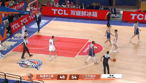 第二节比赛结束,广东54-48领先新疆。