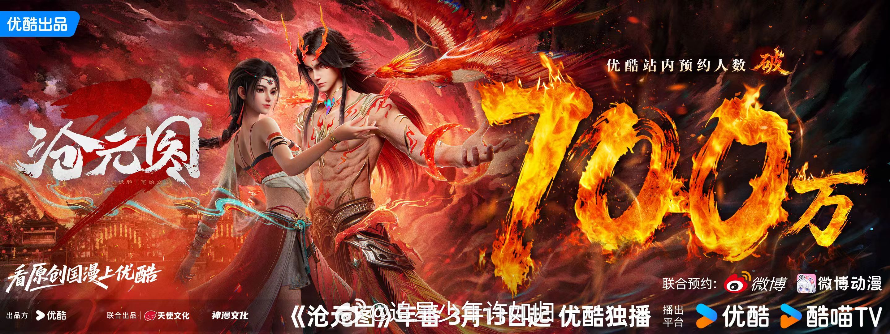 沧元图全网预约破700万 真的杀疯了!这就是国漫顶流回归的含金量吗!还没正式开播就已经达到了700万预约,直接刷新了我的认知好吧!宣传平台一搜全是安利,只能说观众的眼睛永远是雪亮的,用心打磨的好作品,从来都不缺人捧场!这 700 万的预约,都是观众用真心投出的票。坐等3月13开播之日,看它再掀国漫热血狂潮!沧元图你崛起吧!沧元图动画
