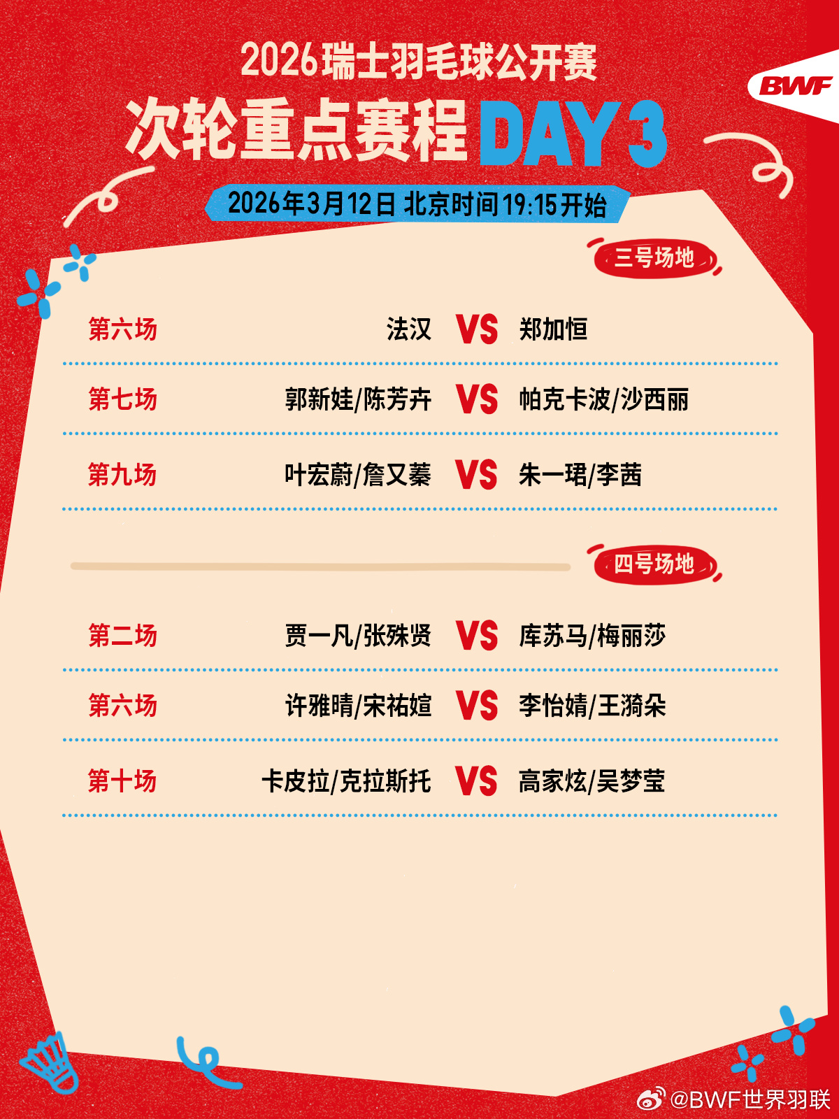 #瑞士赛12日国羽赛程#