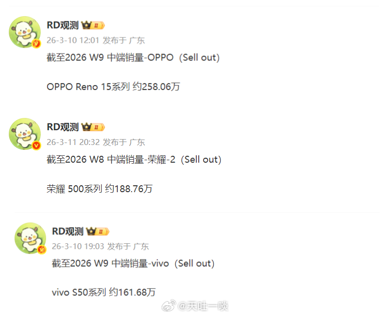 PS:在W9周OPPO Reno15系列的销量高达26.46万台;荣耀500系列的销量为16.71万台;vivo S50系列的销量为18.44万台。苹果最贵手机要来了