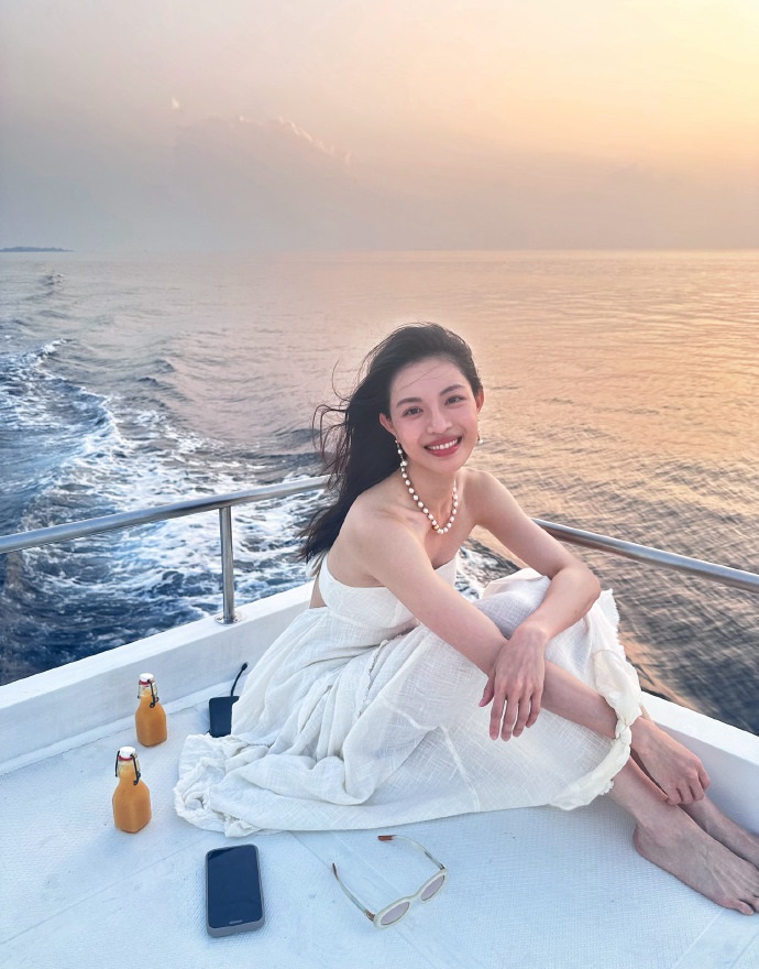 钟楚曦的长发迎着海风舞动,颇具浪漫感,令人动容,可谓是,众里寻他千百度,蓦然回首,那人却在灯火阑珊处。千里江山觅佳音,且听风吟,此心逝于夜吊萍栏时。