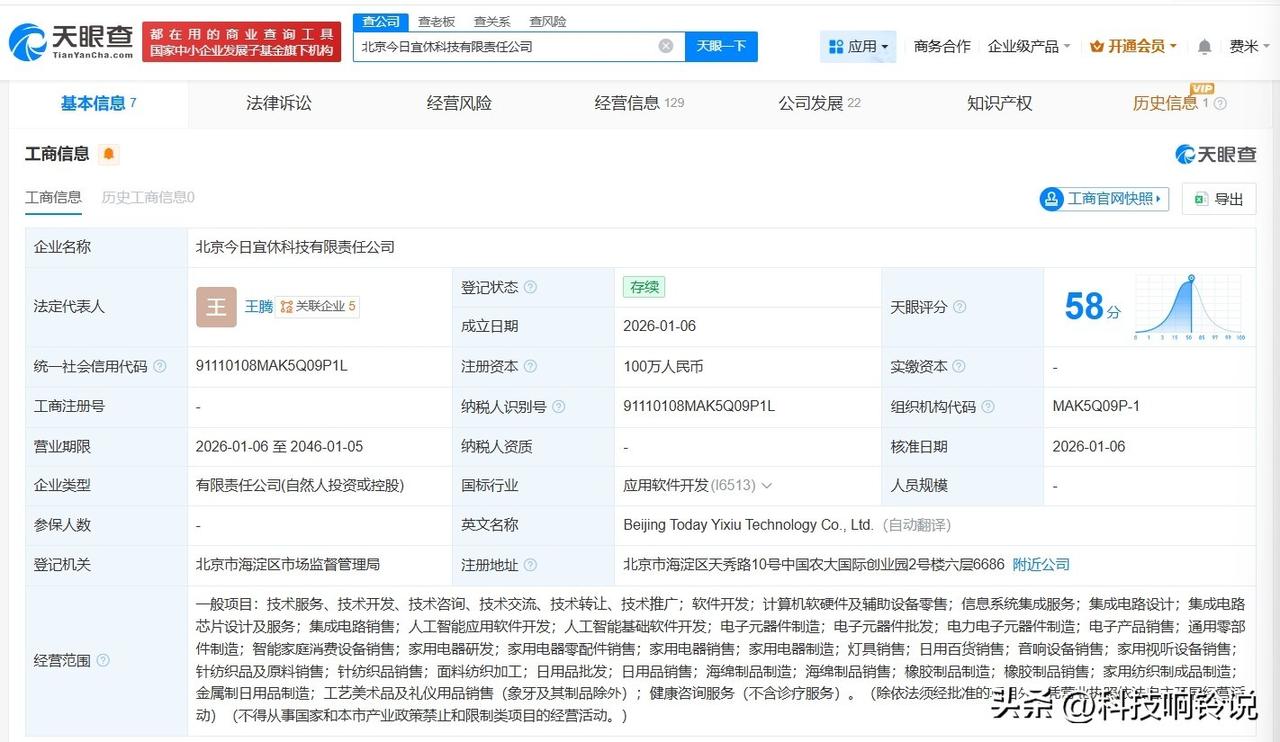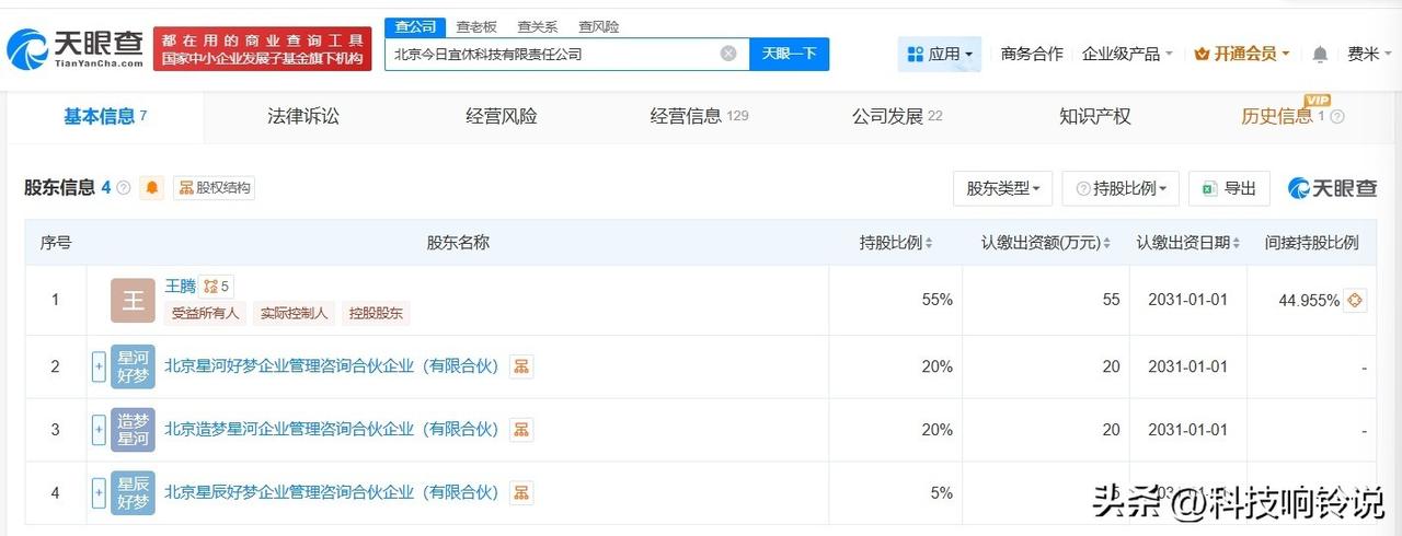 【王腾创业品牌名已被注册为商标 王腾已成立今日宜休公司】王腾官宣品牌名 据媒体报道,3月12日,小米前高管王腾宣布创立新公司,品牌名为“ISHO”(发音“宜休”)。 天眼查知识产权信息显示,“ISHO”“宜休”已被成功注册为商标,申请人包括深圳某连锁服务公司、苏州某工艺公司等,国际分类涉及广告销售、纽扣拉链等。 值得一提的是,宜休关联公司北京今日宜休科技有限责任公司成立于今年1月,法定代表人、董事、经理、财务负责人为王腾,注册资本100万人民币,经营范围含软件开发、集成电路设计、集成电路芯片设计及服务等。股东信息显示,该公司由王腾及其名下北京星河好梦企业管理咨询合伙企业(有限合伙)、北京造梦星河企业管理咨询合伙企业(有限合伙)、北京星辰好梦企业管理咨询合伙企业(有限合伙)共同持股。 天眼查信息: