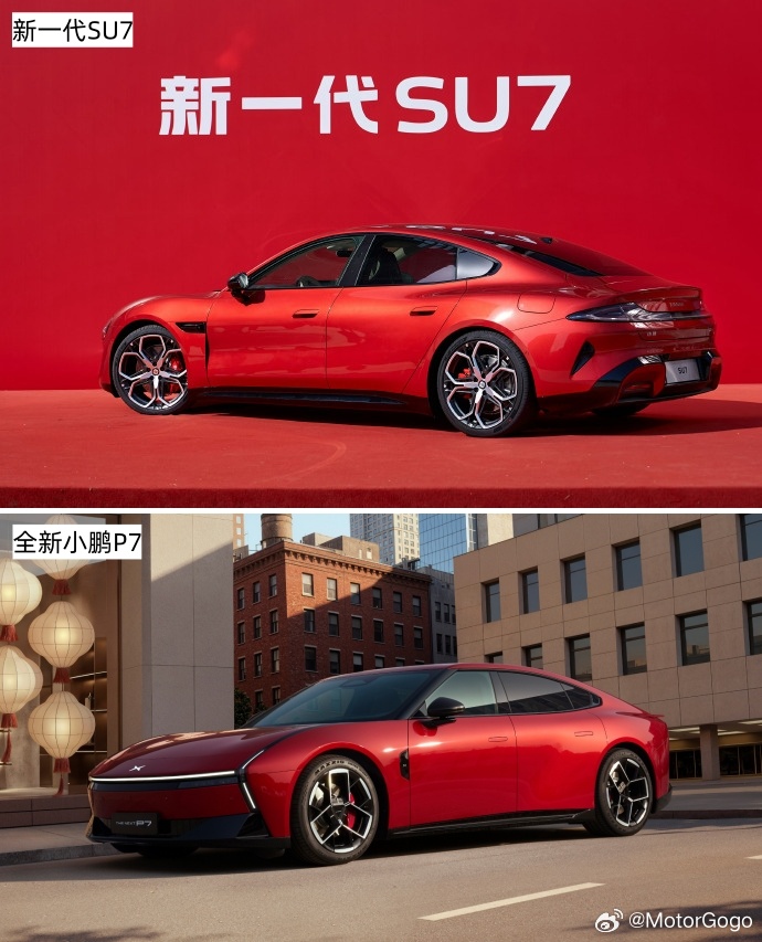 不过有一说一这个颜色确实挺抢眼的;小米这个金属感会强一些,小鹏这个更浓郁一些。全新小鹏p7新一代su7大v聊车