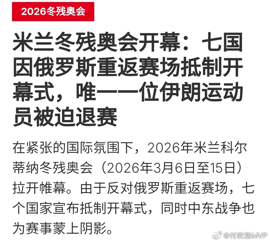 此前,国际残奥委会允许俄罗斯以国家名义参加米兰冬残奥会,这是时隔12年俄罗斯国旗亮相冬残奥会,这一决定引发多国抗议,乌克兰等多国体育代表团为表达抗议更是缺席冬残奥会开幕式,东道主意大利也发声明表示不认同国际残奥委会的决定。德国冬残奥代表队也是缺席开幕式的代表队之一,他们的选手自然不愿和俄罗斯选手合影。