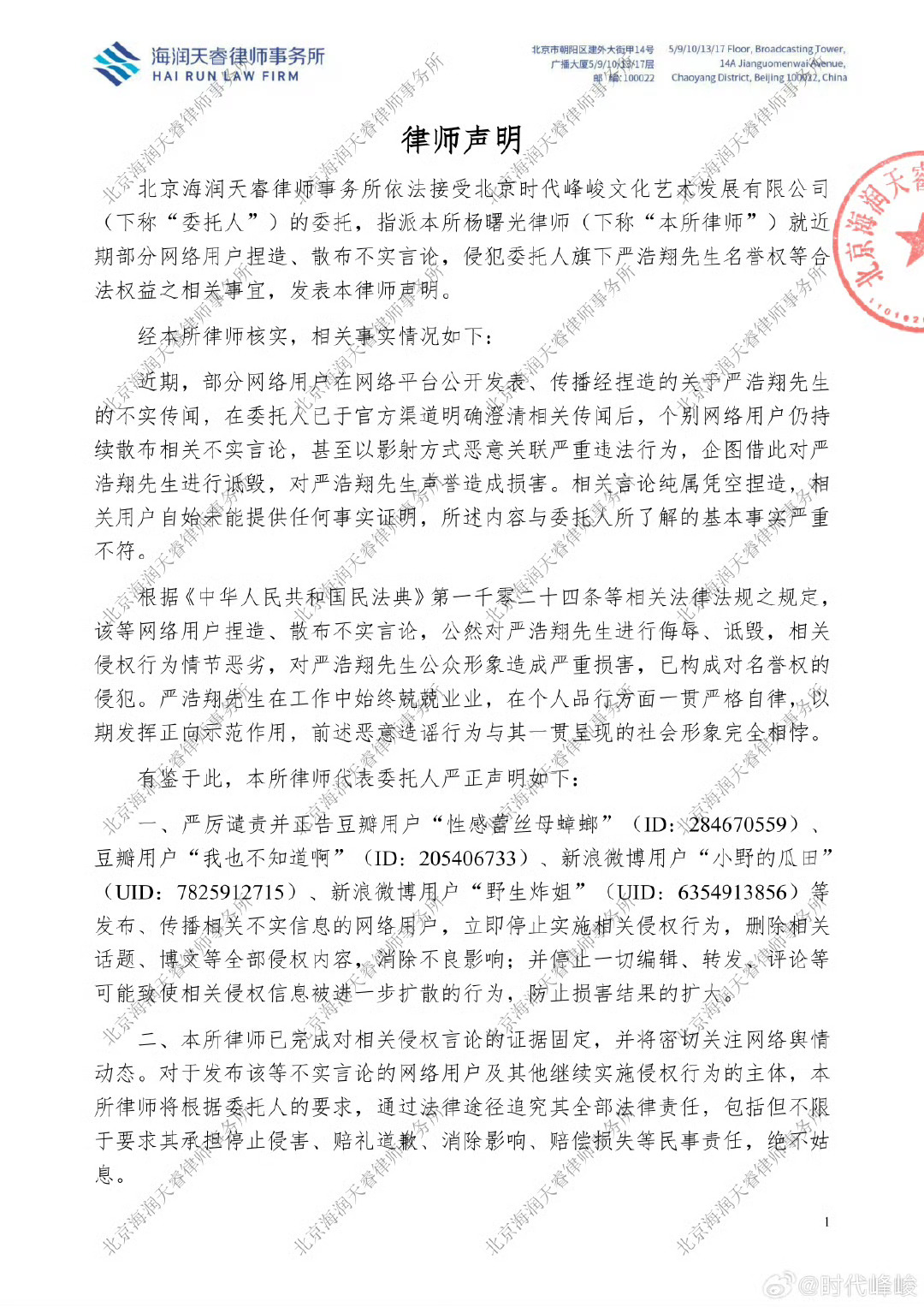 严浩翔告黑时代峰峻为严浩翔告黑终于