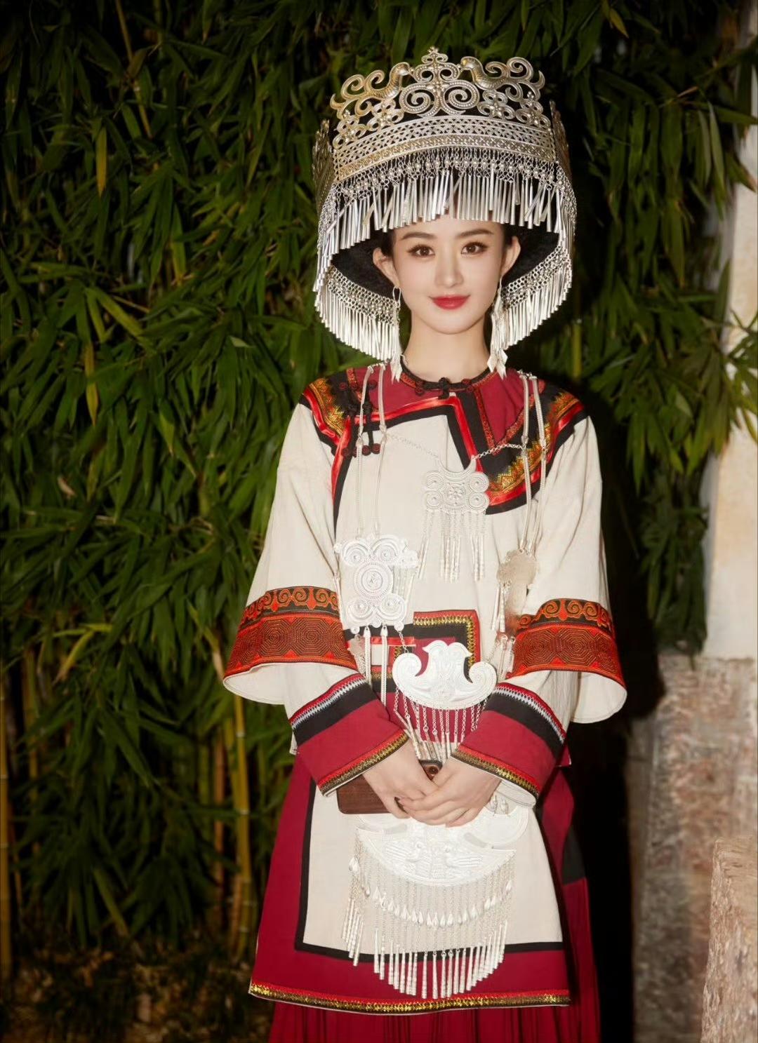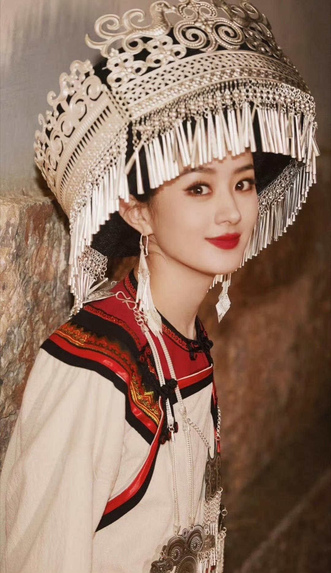 鞠婧祎、赵丽颖、杨超越的少数民族装扮,美美嘟!