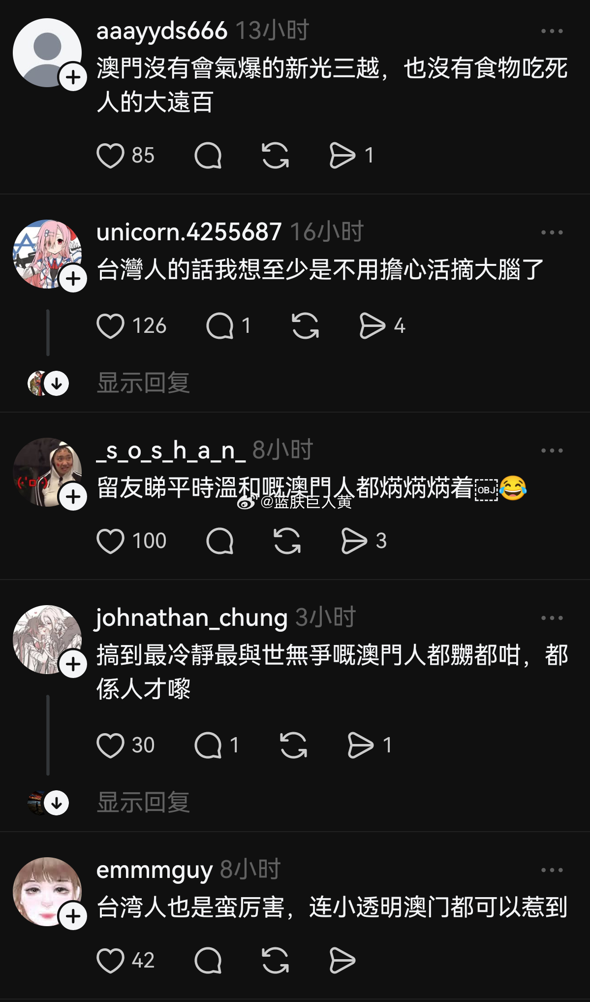 继续围观台湾人与澳门人网络大战