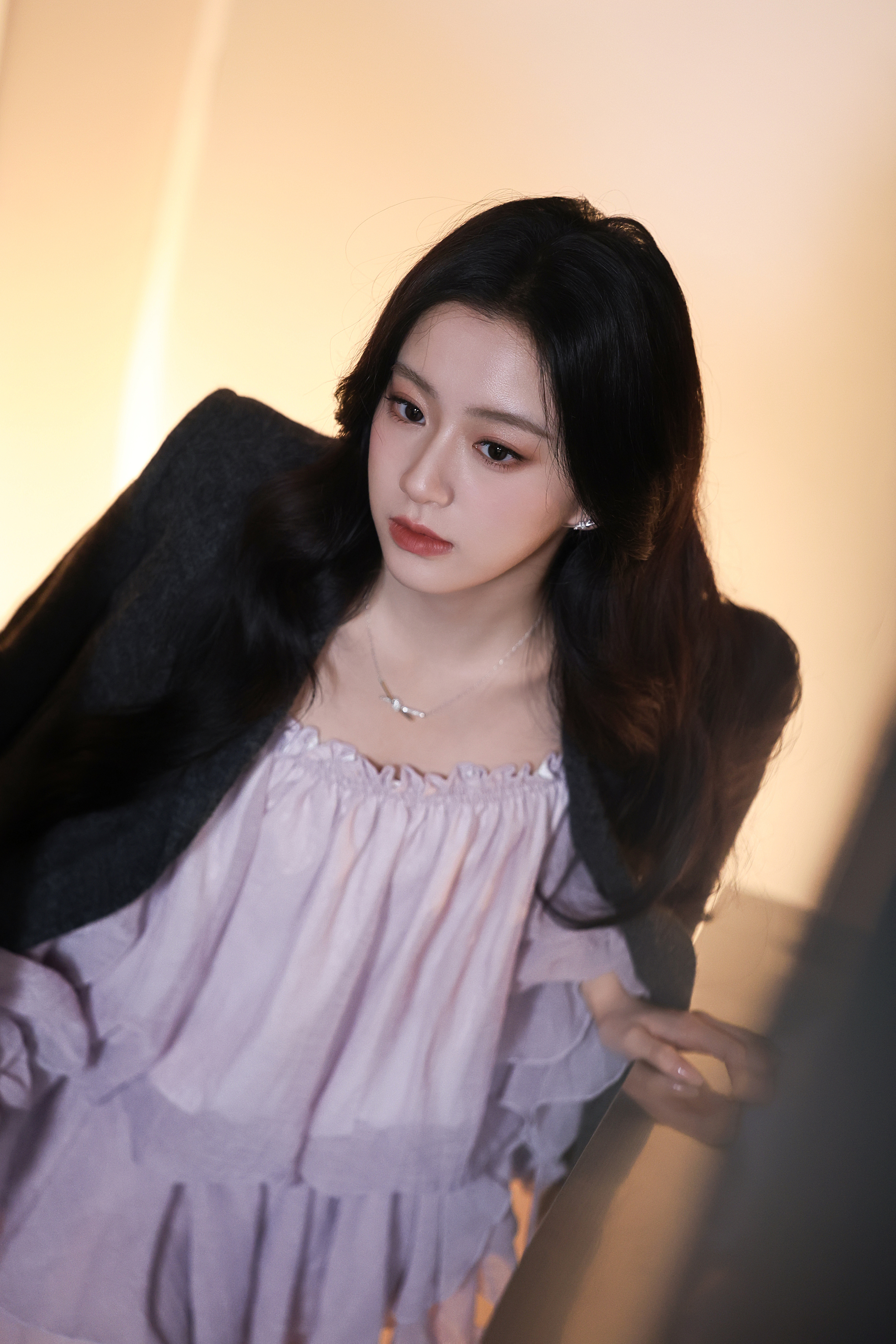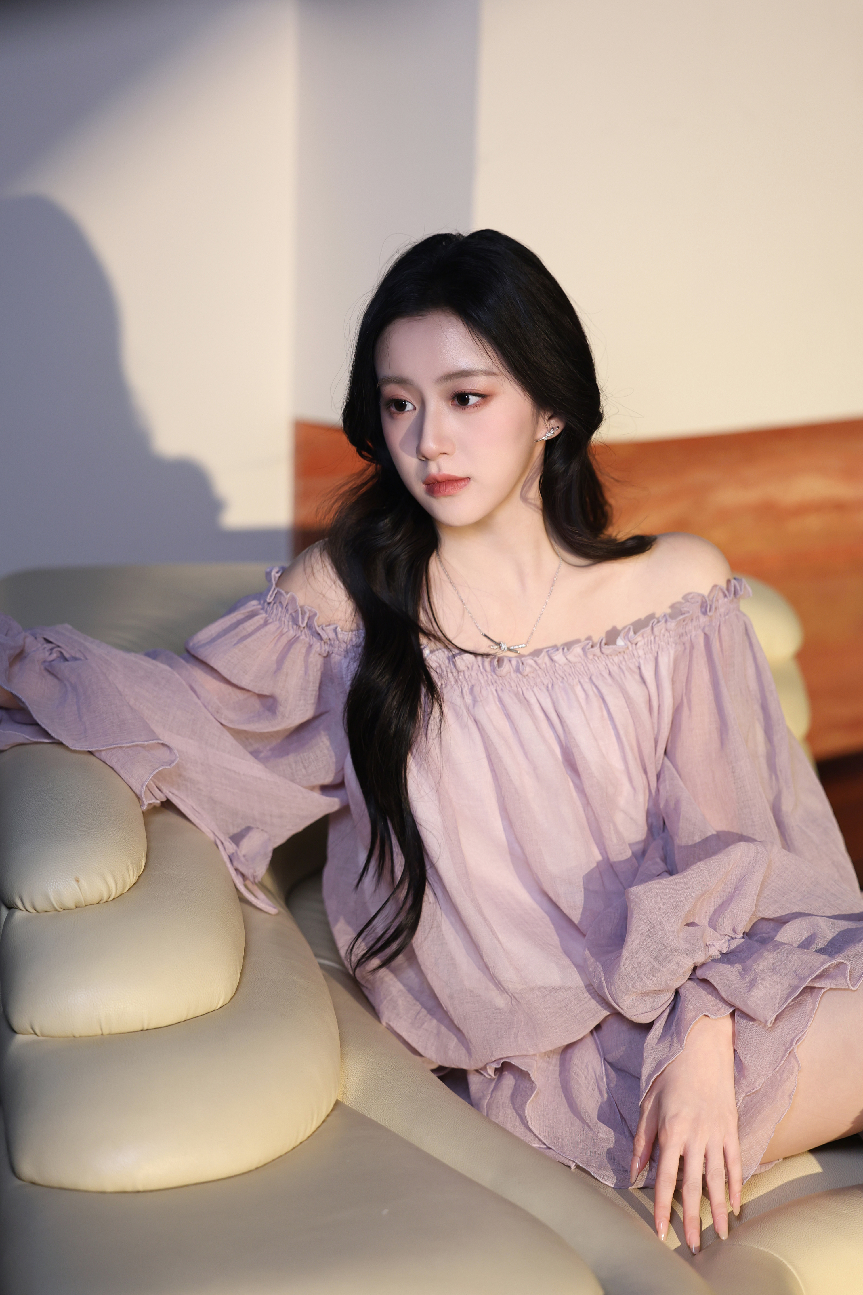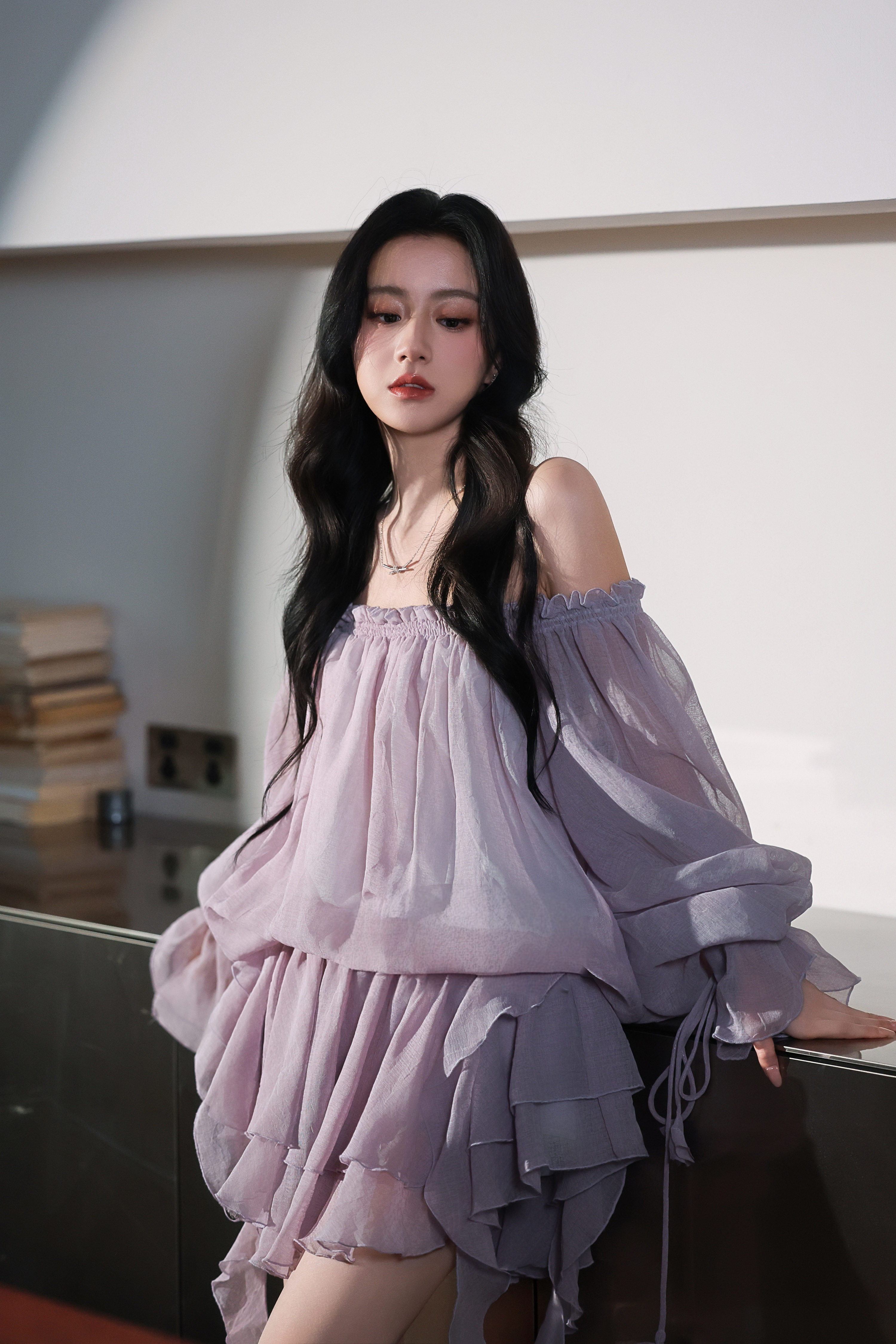-包上恩 雾紫纱裙裹着柔光,是自带滤镜的温柔氛围感。落肩设计藏住锋芒,用褶皱诉