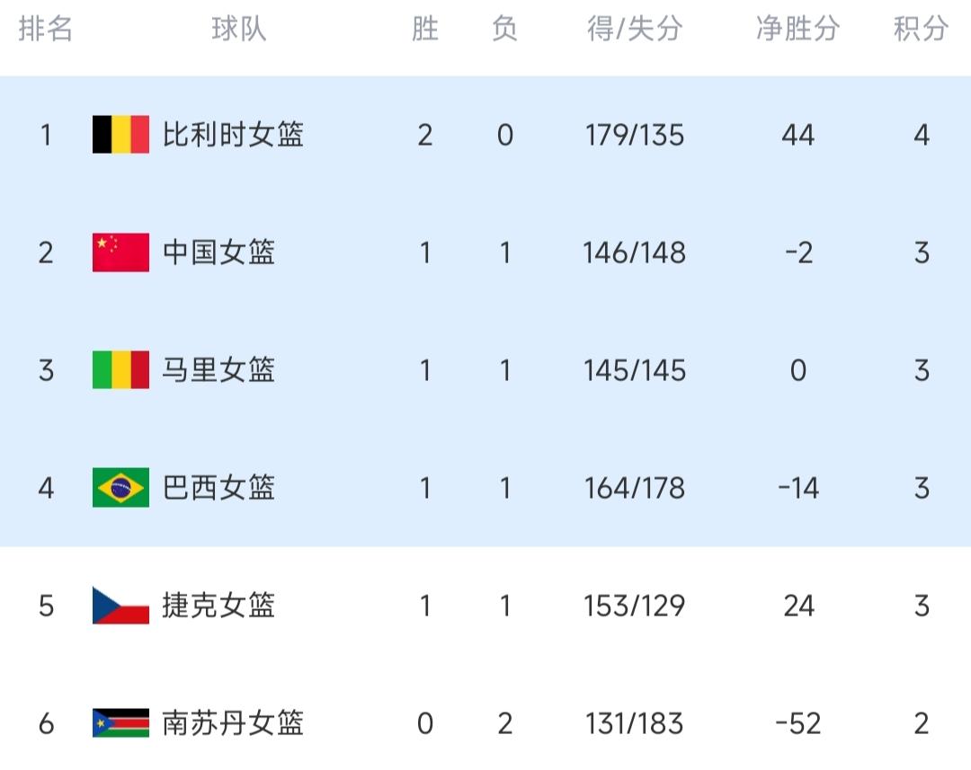 女篮世预赛最新出线形势! 中国女篮65-80不敌比利时,遭遇首败,暂列小组第二! 北京时间3月12日,女篮世界杯预选赛,武汉赛区第二轮的争夺。 ①巴西94-79南苏丹。 南苏丹女篮前程表现可圈可点,没有被轻易拉开差距,但阵容厚度有限,只能靠着核心主力支撑,这对于她们是消耗较大,随着时间推移很难保持高水准,奋起追赶却始终没办法反超,无可奈何吞下两连败。巴西女篮的关键球员稳定输出,卡多佐贡献23分+17板,内线发挥格外强硬,而丹特斯25分,替补席还有贡萨洛提供外线火力,于是她们迎首胜。 ②马里77-64捷克。 这场对决捷克女篮状态较差,全队出现20次失误,外线命中率不足三成,进攻欠缺稳定性,她们没有一节超过20分,很快落于下风,没再能反弹。马里女篮则是发挥强硬,尤其体现内线优势,积极拼抢篮板和造杀伤罚球,靠着首发的多点开花是拼下第一场胜利。 ③中国65-80比利时。 比利时女篮不愧是欧洲冠军,她们的打法完全符合现代篮球风格,拥有出色的后卫组织进攻,推进速度快,全队均能拉开差距,战术执行到位,掀起一波又一波的得分高潮,迅速拉开较大分差。反观中国女篮则停滞不前,仅靠着内线苦苦支撑,若不是张子宇替补爆发,可能已经提前崩盘。 进入下半场没有神奇的翻盘,比利时队延续出色的手感,总能命中投篮,始终保持稳固优势。中国队拼尽全力但难以改变结果,最终65比80遗憾告负,纵观比赛内容差距较为明显,我们的打法过于落后,外线威胁太小,只有内线解决问题,张子宇20分+11篮板。