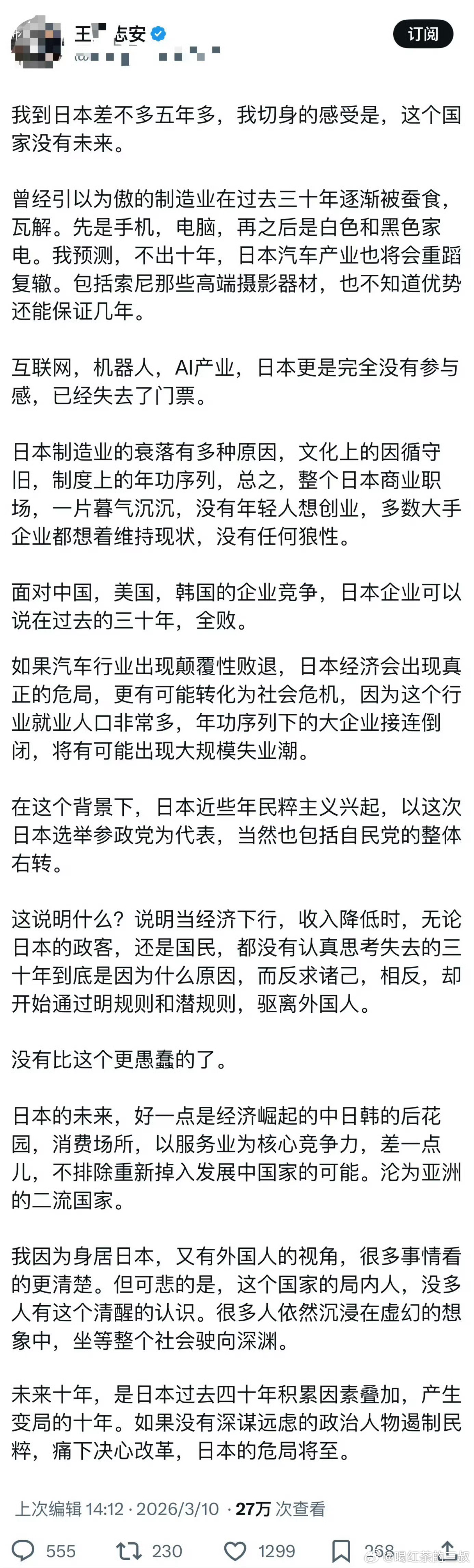 本田突发暴雷王局说的。现在好像汽车行业确实很一般了。