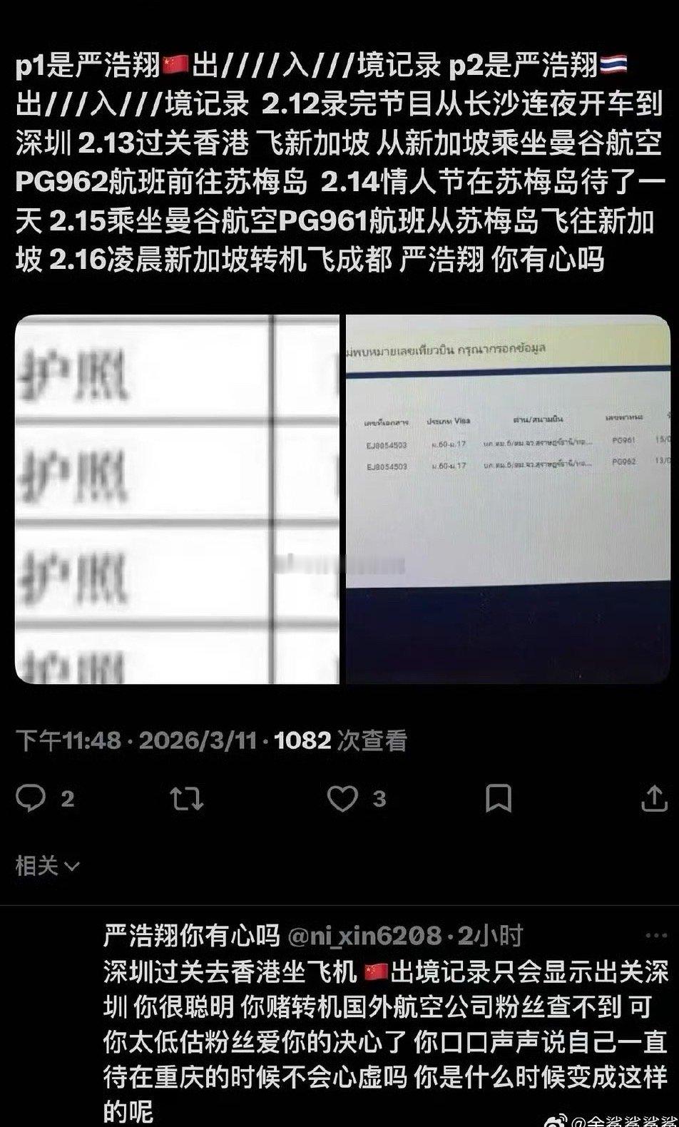 时团严浩翔爆🍉了但是我觉得不锤,人家可能就是出去旅游一下,防私生尾随呢,侵犯隐