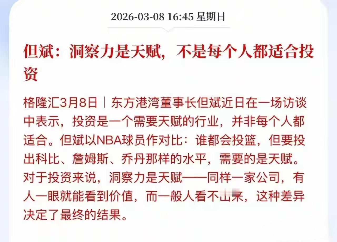 炒股的人一般都是“鳄鱼进去”,”壁虎出来”,但斌这样说,中国的炒股人群盈亏比例是1:9,那么,只有10%的人能在这个股市里面赚到钱,那剩下的90%到80%的人很多大多数是亏钱的!如果很多人想全职炒股的话,估计很难维持下去!在这个市场,确实很多人赚不到钱,哪怕是牛市也赚不到钱! 这个市场必须还要有洞察力,同样还要有分析能力!所以在这个行业不是谁都能够参与其中能赚到钱的!因为这个市场其实就是大浪淘沙!你能不能从中淘到黄金,就看你有没有这个能力?