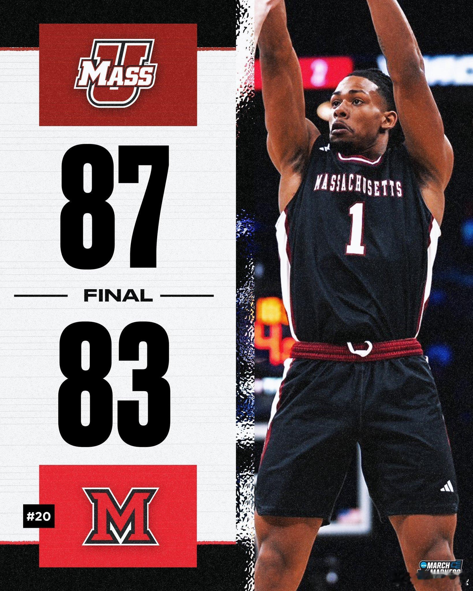 NCAA 马萨诸塞在MAC锦标赛中送给迈阿密大学牛津分校赛季首败