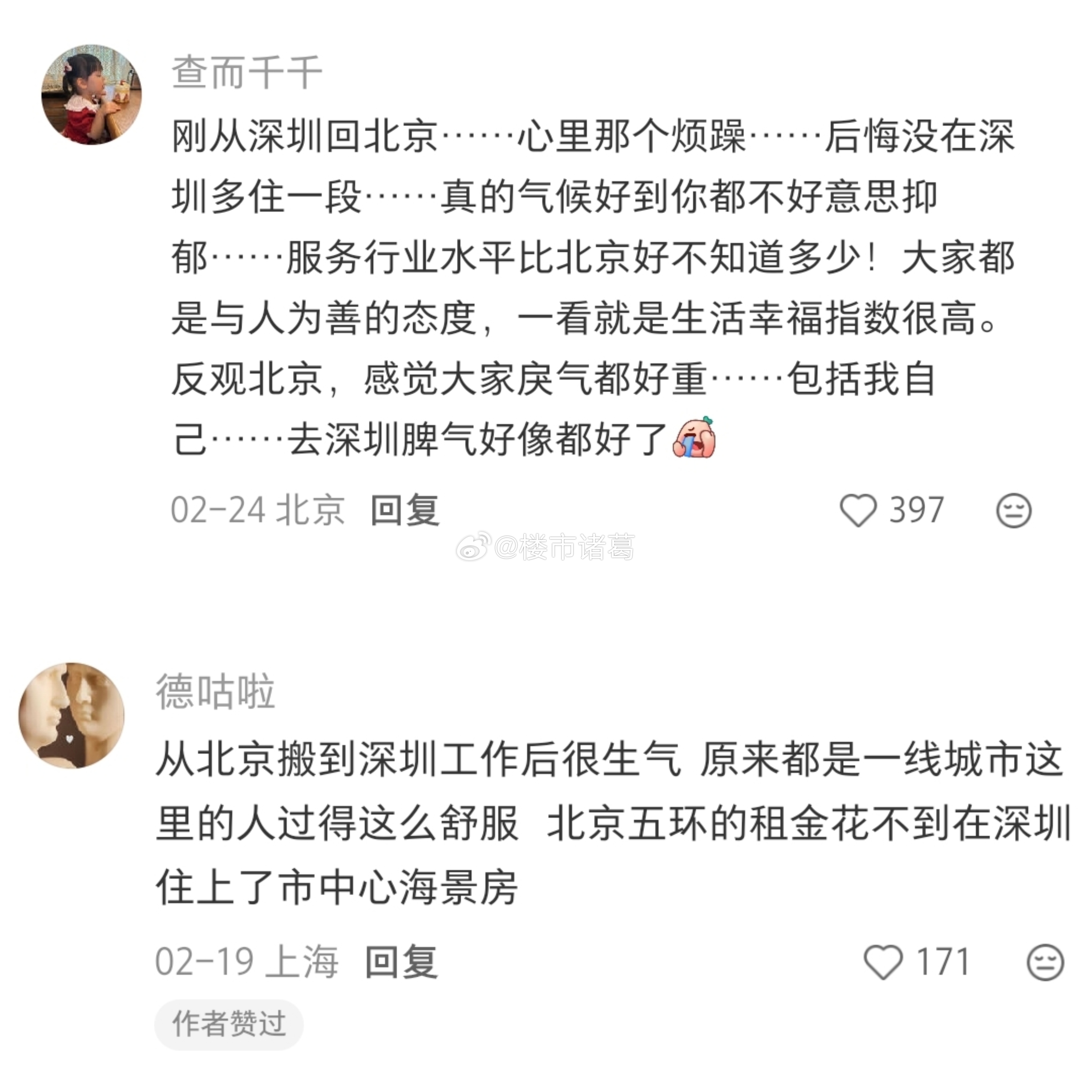 北京、上海网友对深圳的评价: