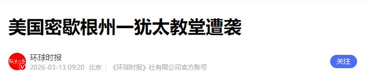 战火最终还是烧到美国本土了 美国当地时间 3 月 12 号,新华社纽约分社发布权威消息,美国密歇根州底特律市西北郊区的西布鲁姆菲尔德犹太教堂,发生了一起蓄意持枪驾车袭击事件。 这不是远在海外的战乱新闻,而是真真切切发生在美国本土城市里的暴力冲突,一直被美国视作 “安全后院” 的本土土地,终于被暴力战火笼罩,普通民众的家门口,成了冲突发生的现场。 事发当天,这座犹太教堂正在按计划开展集体活动,教堂附属的幼儿中心里,还有 140 名孩子在正常活动,现场全是毫无防备的普通民众,谁都没料到危险会突然降临。 一名携带枪支的嫌疑人,驾驶车辆直接朝着教堂入口高速冲撞,全程没有任何减速避让,摆明了是故意发起袭击。 车辆冲到教堂入口后,嫌疑人立刻下车,与教堂安保人员发生正面交火,现场瞬间枪声不断、一片混乱。 交火过程中,嫌疑人当场死亡,一名教堂安保人员在冲突中受伤。嫌疑人驾驶的车辆还在现场起火,黑色浓烟从教堂区域不断冒出,现场画面让人揪心。 更让人心惊的是,美国当地执法部门后续检查发现,嫌疑人车辆的后备箱里,还藏着大量爆炸物。若是这些爆炸物被引爆,教堂建筑会被严重损毁,里面的孩子和民众都会陷入致命危险,后果根本不敢想象。 事件发生后,当地警方第一时间赶赴现场,事发区域迅速被大量警力封锁,周边道路全部实施管控,警方还向周边居民发布避险通知,提醒大家不要靠近危险区域,同时增派警力,加强全市所有宗教场所的巡逻防控。 美国联邦调查局也立刻介入处置,将这起事件定性为针对犹太社区的蓄意暴力行为,专门成立调查组全面展开调查,排查是否有其他同伙参与,把袭击的前因后果查清楚。 经过官方调查,嫌疑人身份已经明确,此人是 41 岁的艾曼・穆罕默德・加扎利,黎巴嫩裔美国人,2011 年通过移民签证进入美国,2016 年正式获得美国国籍。 相关消息显示,袭击发生前约 10 天,嫌疑人家族在黎巴嫩的村庄遭遇空袭,他的两名兄弟、两名侄子全部遇难,还有多名亲属身受重伤,家人离世的打击让他精神崩溃,最终做出了这种极端暴力的行为。 这起发生在美国本土的教堂袭击案,不是孤立的偶然事件,而是美国本土安全持续恶化的真实体现。长期以来,美国频繁在海外挑起地区冲突、发动军事行动,总以为战火不会烧到自己的国土,本土能一直安稳太平。 可现实却截然相反,海外的战乱情绪、民族宗教矛盾,顺着人员往来、社会舆论等渠道,一步步蔓延到美国本土,最终变成针对平民的暴力袭击,让美国民众亲身感受到了战火带来的恐惧。 这些年,美国本土的枪支暴力、恶性袭击早已成为常态。学校、商场、教堂、公园这些本该安全的公共场所,频频发生枪击事件,每年都有大量民众死于枪支暴力,老人、孩子都难逃伤害。 据美国相关机构统计,每年美国都会发生数百起大规模枪击事件,数千人因枪支暴力失去生命,数万人因此受伤。枪支管控形同虚设、社会矛盾不断激化、极端情绪肆意蔓延,这些问题长期得不到解决,暴力事件只会越来越多、越来越恶劣。 这次底特律犹太教堂遇袭,最让人揪心的就是现场有上百名儿童。如果教堂安保人员没能及时阻拦嫌疑人,这些孩子大概率会遭受伤害,原本用来祈福、安宁的宗教场所,变成了暴力冲突的战场。 当地民众尤其是犹太社区的居民,心里满是恐惧和不安,现在当地的社区、学校、宗教场所都被迫加强安保,可再多的安保人员,也消不掉民众心里的恐慌,更没法从根源上杜绝暴力袭击的发生。 美国政府一直把大量精力放在海外事务上,忙着插手其他国家的事情,却对国内最紧迫的安全问题视而不见。 枪支泛滥管不住,社会分裂、仇恨情绪愈演愈烈,海外冲突带来的负面影响不断反噬本土,最终受苦的都是普通民众。 这次犹太教堂袭击事件,给美国敲响了最响亮的警钟:到处在海外煽风点火、制造地区动荡,最终只会让暴力蔓延到自己的国土上,美国本土从来都不是永远安全的 “避风港”。 如今,战火已经实实在在烧到了美国本土,底特律的这起袭击,只是美国本土安全失控的一个缩影。 如果美国依旧不改变霸权思维,不重视国内安全治理,不解决枪支泛滥、社会矛盾、极端暴力这些顽疾,不停止在海外制造冲突,未来只会有更多暴力事件发生,更多无辜民众会受到伤害。 只有先放下对外的干涉手段,踏踏实实管好国内的事,给民众打造安全、安稳的生活环境,才能真正让战火远离本土,让美国民众不用再活在暴力袭击的恐惧里。