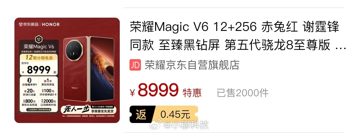穆fans已确认,荣耀magicV6在某东两天预售量在2000+,对于涨价较大的