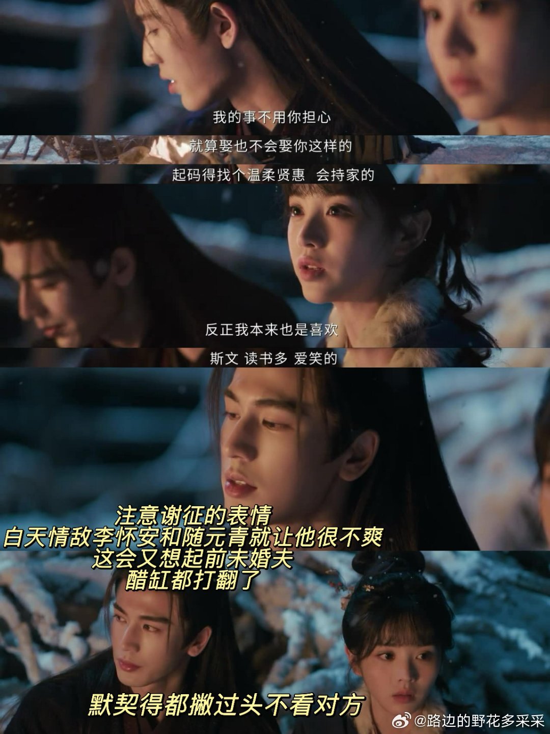 二刷之后,总算看懂了谢征和长玉的分别戏谢征早就表明过自己会离开,长玉也曾挽留过,都没有改变谢征的去意。站在谢征的角度国仇家恨未报,理智告诉他不能动心,但感情的事不是努力压制就可以。所以在解决随元清的事情时,谢征被言语刺激,又被李怀安的刻意提醒樊长玉的去留,再加上樊长玉主动提出给他留了和离书。种种情绪压在谢征心里,不停的发酵直至彻底爆发。谢征完全没有恋爱经验的人,在感情的事情上没有安全感又扭捏。而樊长玉的性格和他完全相反,直率利落,所以两个人开始了针尖对麦芒的互相戳肺管子,尽说对方不爱听的话。相处了那么久谢征不可能不了解樊长玉的性格,樊长玉主动提出分手,谢征扭捏得跟个小媳妇一样,情商真的堪忧啊。其实吧像樊长玉这样的女孩子很好沟通的,她要一个明确的答复,要的是你的态度。不是一个冲动的强吻就能解决的,所以樊长玉扇谢征第一个耳刮子的时候,我是拍手叫绝的,咱女孩子就要有这种底气,没有经过我的同意,你就是在看轻我羞辱我。本来在樊长玉第一个耳刮子的时候,就已经给谢征机会,让他冷静好好想想接下来如何沟通。谢征这个榆木脑袋啊,我都不知道怎么说他好,还在火上浇油提宋砚,真是哪壶不开提哪壶啊。这无疑不是在侧面控诉樊长玉对他不是一心一意,这谁能忍啊,你再来强吻不是再来一个耳刮子的事情了,樊长玉直接拔刀相向了。这里我真的好喜欢樊长玉的人格,就算是喜欢的人又怎么样,你都没有给我承诺和态度,我凭什么要被你牵着鼻子走,凭什么要委屈自己一直迁就你。可能也是两个耳刮子下去了,谢征知道要好好说话了。眼神虽然在挽留,但是脱口而出的话只会把樊长玉推得更远。什么叫“与其今后找个白眼狼,不如现在跟我走”说得好像你更委屈似的,你要知道是你认定了樊长玉啊。唉!真是没辙了!暂时判你无妻徒刑吧……逐玉ℓ
