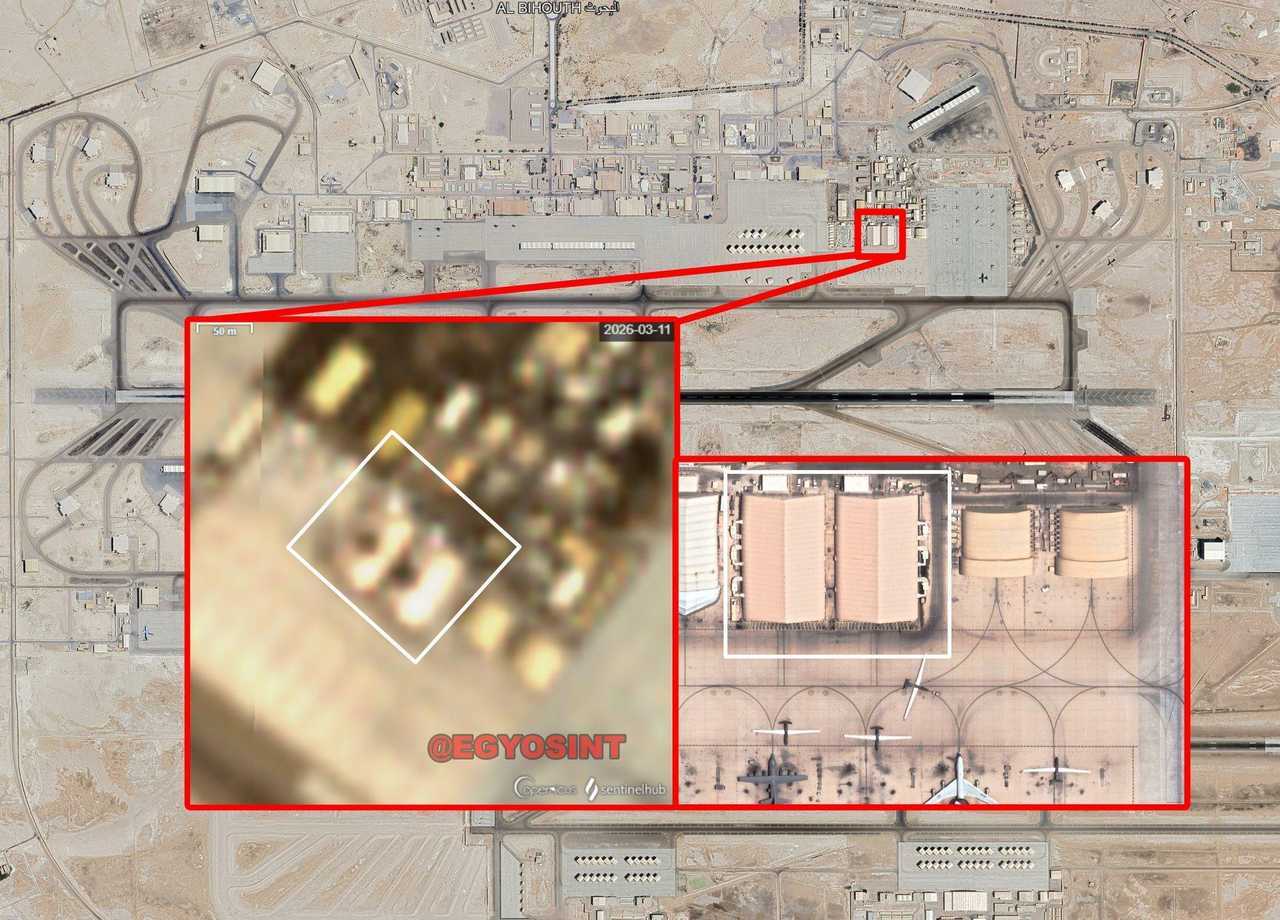 该机库此前停放着GlobalEye预警指挥与控制飞机及CN-235运输机,同时据报道,附近用于存放MQ-9“死神”无人机和MQ-4C“海神”无人机的美国无人机掩体也遭到损坏。