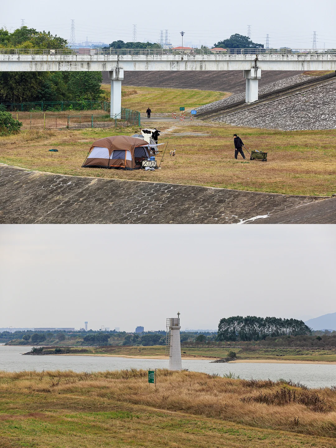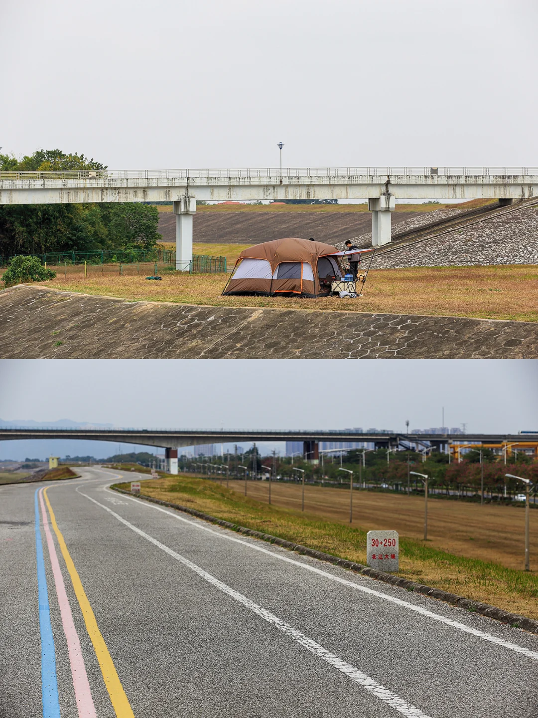 ✅在这长达40公里的河堤上面,河堤两边都是铺满了绿草,个别地方草地辽阔,很多人都是直接在草地上搭起来帐篷露营、烧烤,而且每一段河堤的风景都不样。
