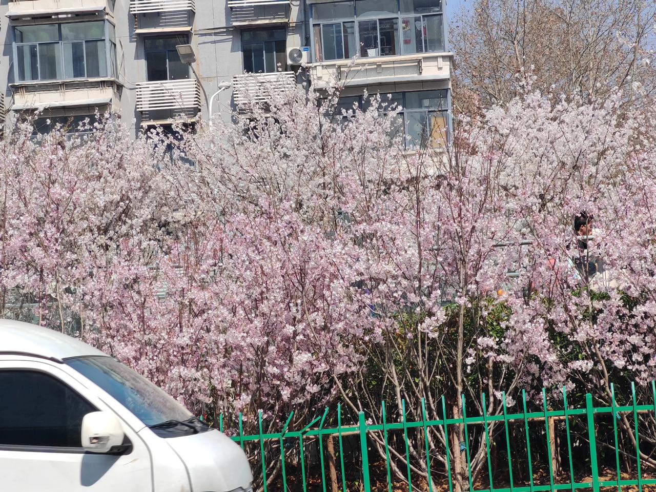 风若轻拂,花枝便微微颤动,花瓣似有若无地簌簌飘落,恍若下了一场无声的香雪。背景的蓝天干净得没有一丝云翳,将樱花的素白衬得愈发清透;远处楼宇的轮廓在花影后若隐若现,更添了几分都市里的自然诗意。左上角的灯杆静静伫立,仿佛也沉醉于这樱花的盛景,连它投下的影子,都成了春日构图里的一抹别致注脚。 整幅画面,是生命蓬勃的绽放,是自然与城市温柔的相拥,每一眼都浸着春日的明媚与花香,让人忍不住沉溺在这“花在枝头笑,天为幕布蓝”的美好里。 一张照片,元宝生成一段美好的文字,真是自愧不如。