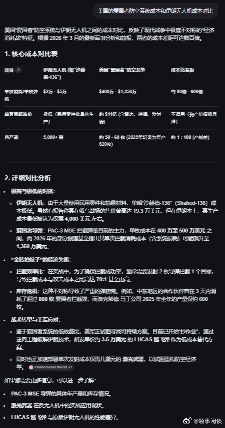 彭博智库报告估算,自战争爆发以来,美国及其地区盟友已向伊朗导弹和无人机发射近1000枚PAC-3爱国者拦截弹,这一数量远超这种昂贵且难以生产的武器的替换率。