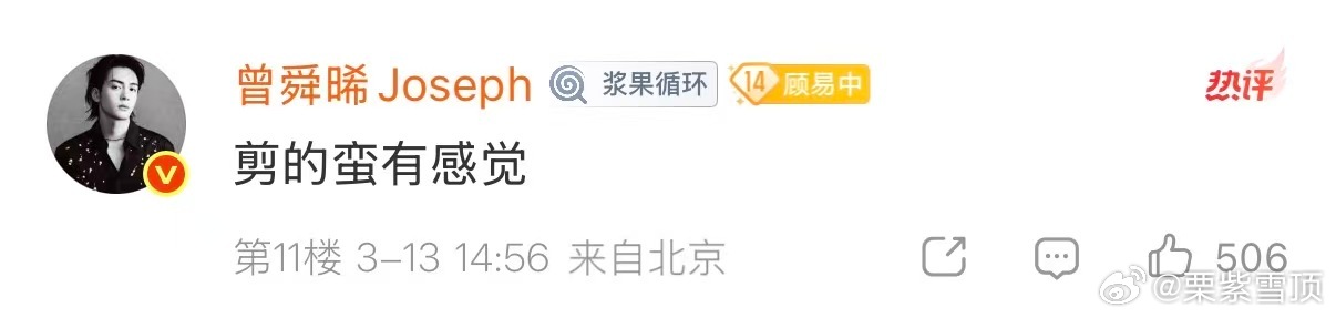 曾舜晞夸了粉丝的vlog 什么叫双向奔赴?这就叫双向奔赴曾舜晞空降超话,还在粉丝发布的vlog下评论“剪得蛮有感觉”,两方都是用心的人啊
