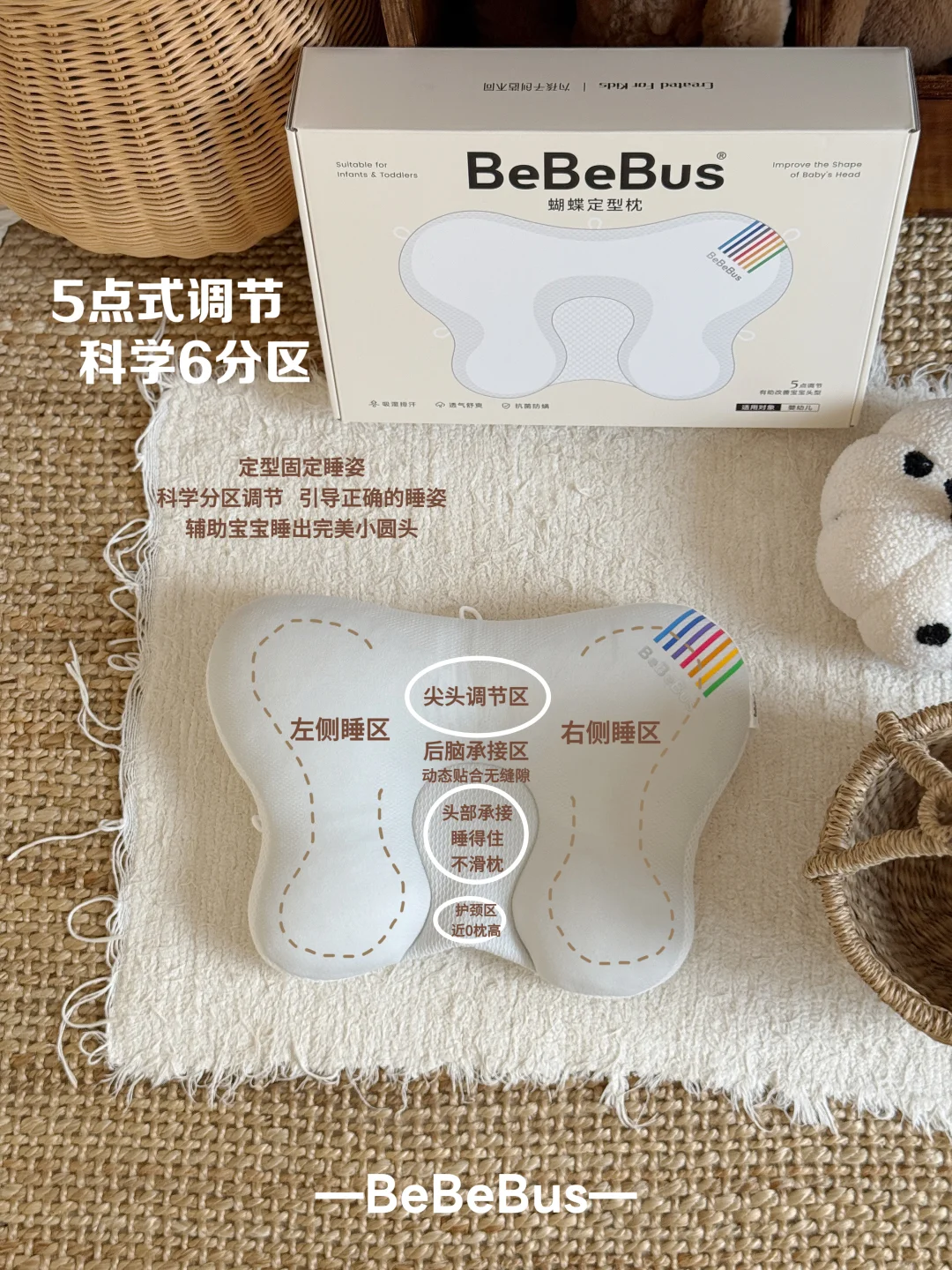 我家俩娃的圆头多亏了有BeBeBus蝴蝶定型枕的帮助!这个蝴蝶定型枕真的又刷新了我对定型枕的认知!它能随宝宝睡姿实时微调支撑角度,温柔托住头颈。