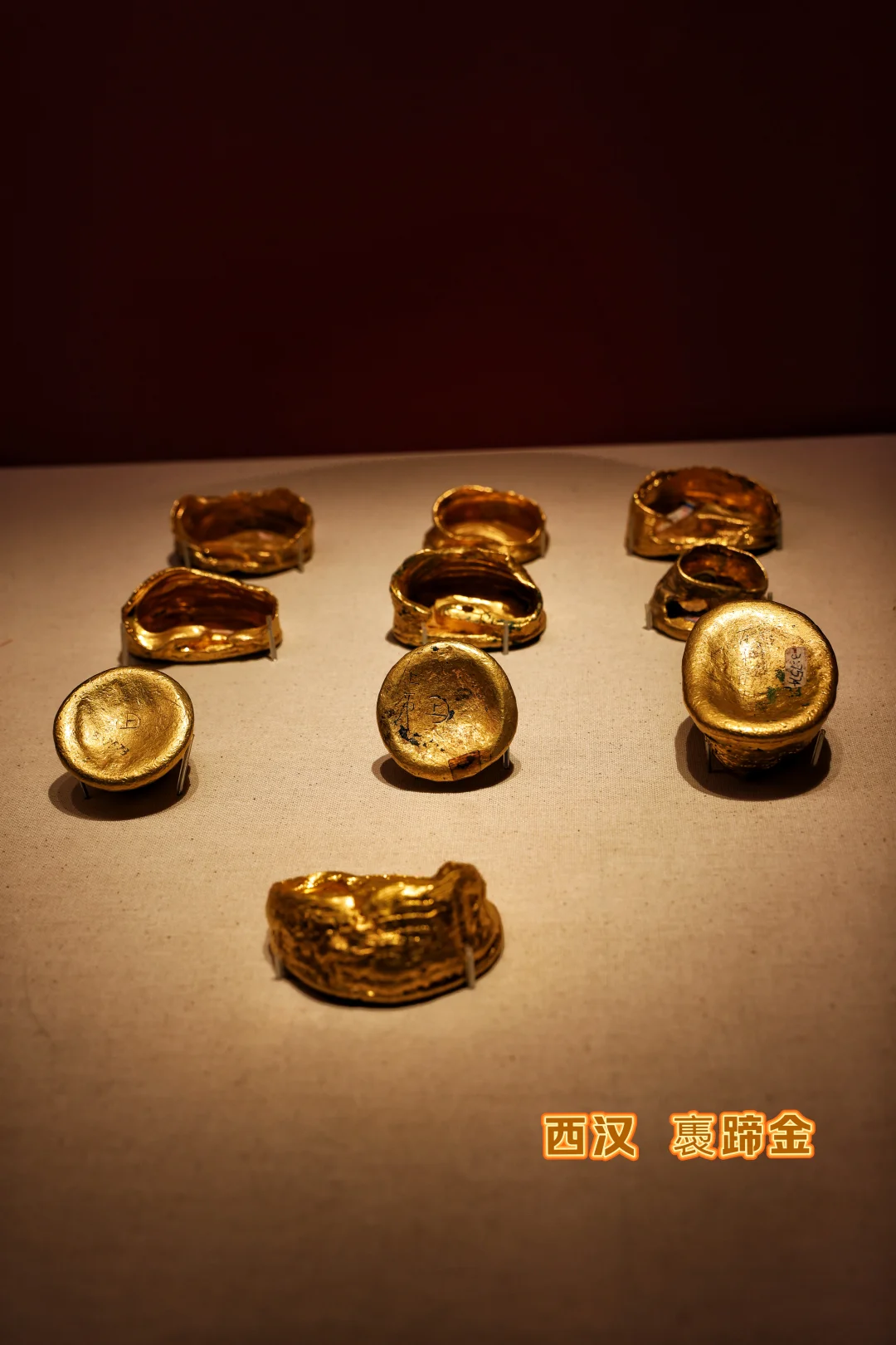 •西汉褭蹄金:马蹄形金饼金光熠熠,是汉代“马蹄为瑞”的财富象征,摸不到也能被这沉甸甸的贵气震撼到。