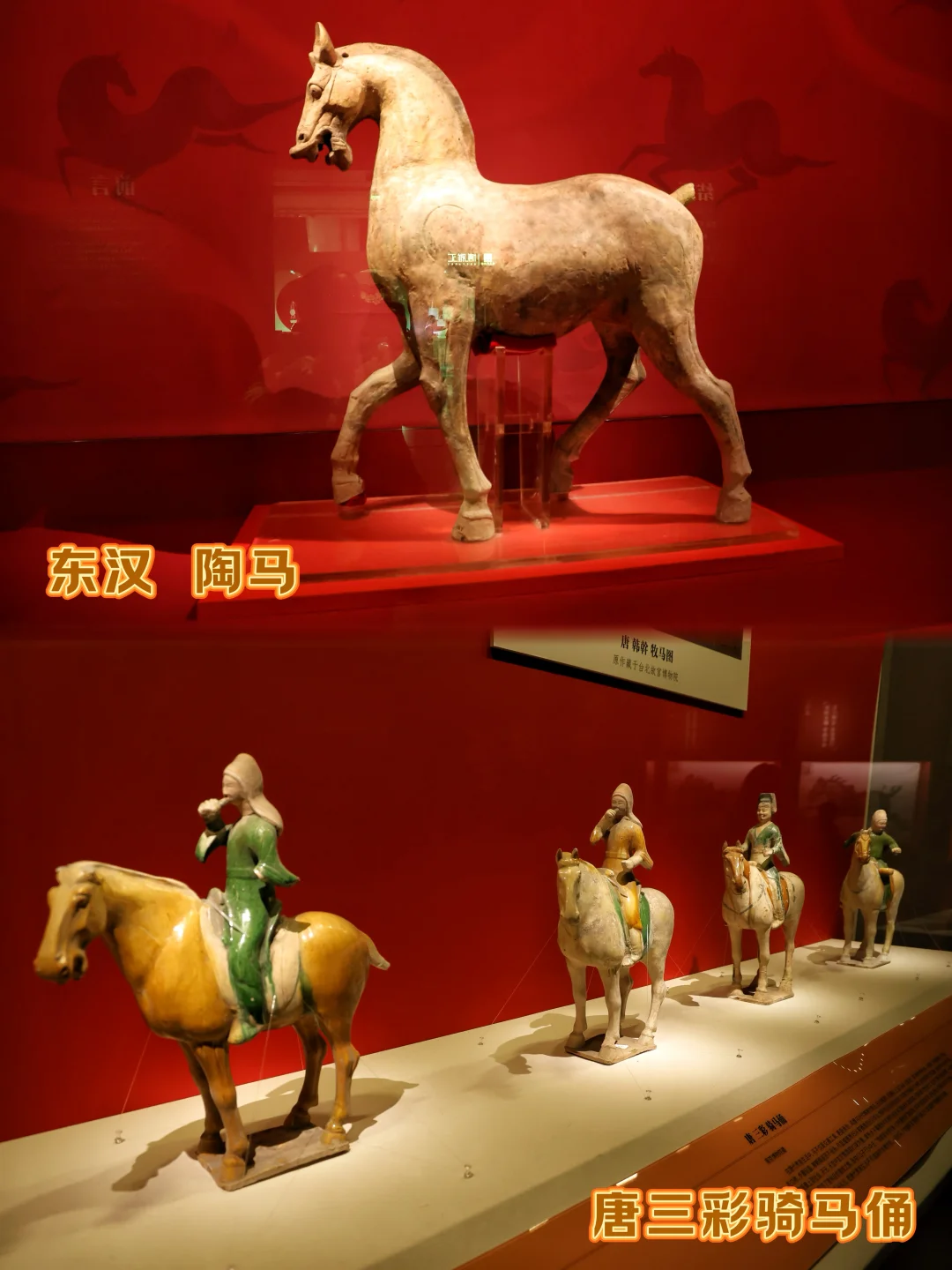 🎠唐三彩骑马俑:黄绿釉色鲜亮,骑俑吹笛扬鞭,盛唐的奔放与繁华,都凝在这跃动的马背上。