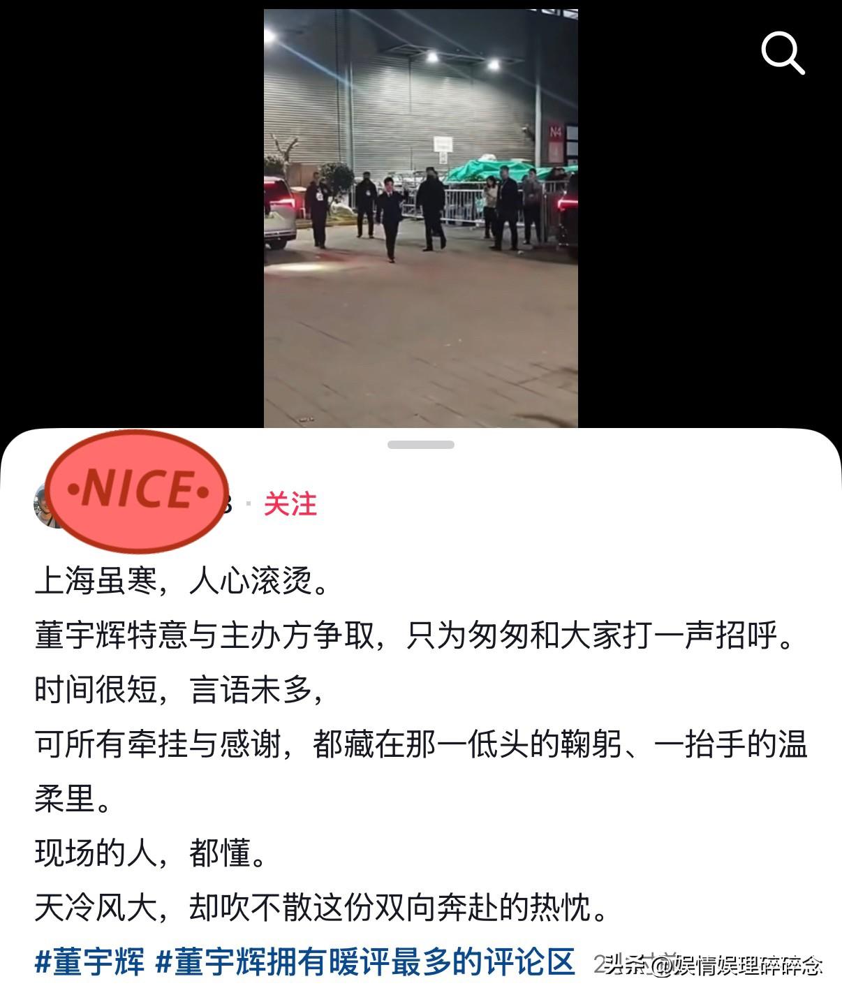 若是在现场看到这一幕, 应该会很激动吧! 一位在AWE现场的博主分享视频,宇辉特意与主办方争取,下车和现场粉丝打招呼,挥手鞠躬致谢! 现场的粉丝举着手机,喊着宇辉,他微笑示意,朝人群挥手,弯下腰鞠躬,然后匆匆走向展厅。 这两天连续高强度的直播,连轴转的行程,看得出来他已经很疲惫了。可即便再累,他依旧把最好的状态留在镜头前,把最真诚的一面,留给每一个专程来见他的人。