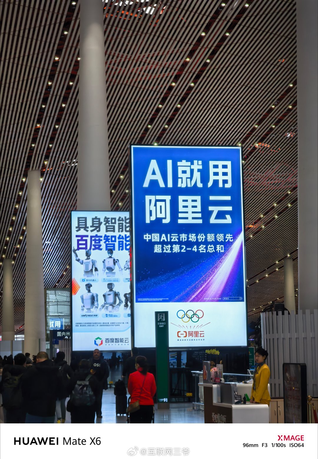 早班机回家,首都机场的大广告牌,豆包火山、阿里云、百度智能云的广告牌各个显眼包啊
